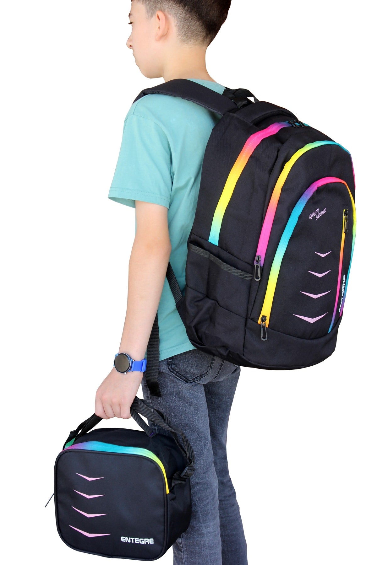Integrated 9956 3-piece bag set school bag features: *suitable for daily and school use. *1 zippered eye on the front *3 zippered compartments *laptop compartment in the compartment *flask eye on the side *new generation rainbow pattern zipper *supported, ergonomic back *100% polyester *water-resistant special fabric product features *product group: daily and school bag *gender: unisex *dimensions: 44x34x24cm lunch box features * suitable for hand and shoulder carrying. * shoulder strap can be adjusted according to need. * lunch box size: 24 x 20 x 10 cm pencil holder features *1 piece large zippered eye *1 piece small zippered eye product dimensions: 20x10x5cm Improved version for clearer understanding and better search visibility. Suitable for users seeking detailed and reliable product information.
