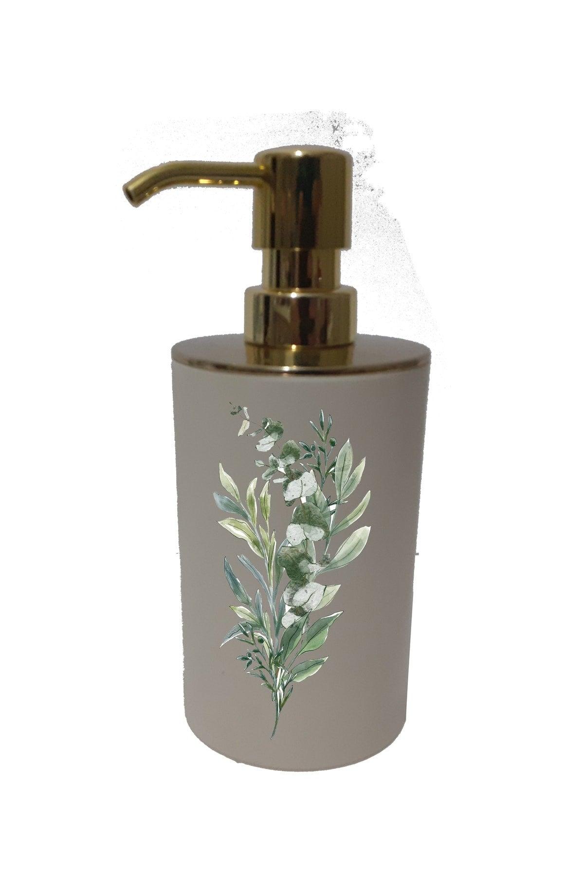 Botella de vidrio con soporte de madera, líquido de lavado floral cepillado y limpiador de cocina etiquetado 500 ml