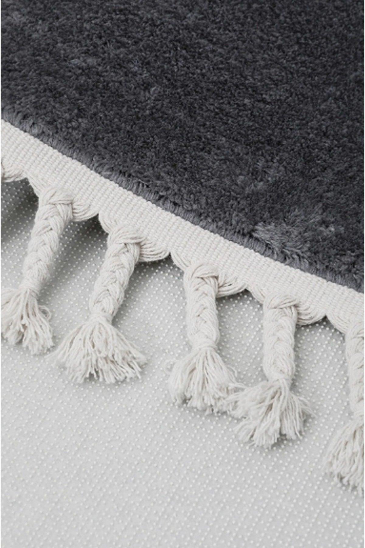 Dinarsu Tasseled Single Round Post Plush alfombra sin deslizamiento antracita con flecos 100 cm