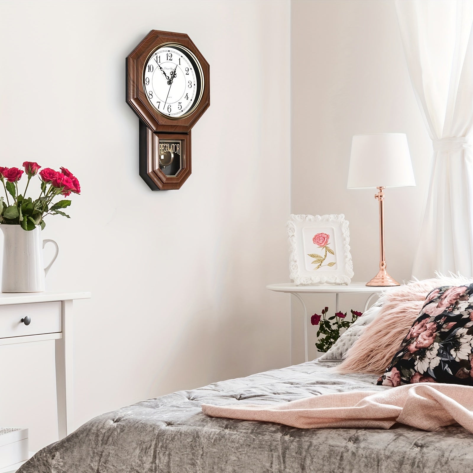 1 Pack Pendulum Wall Clock Classic Regulator Clock Pendulum Clock Battery Operated - Decorative Wall Clocks For Living Room Decor, Home, Office Gift-11.8"X17.7"