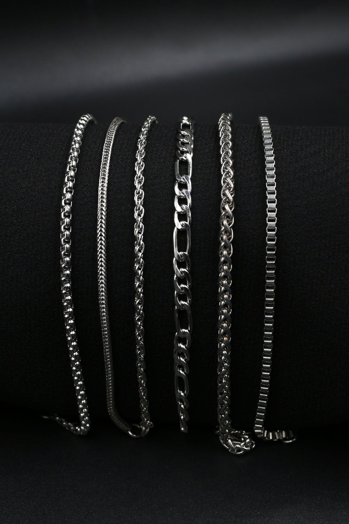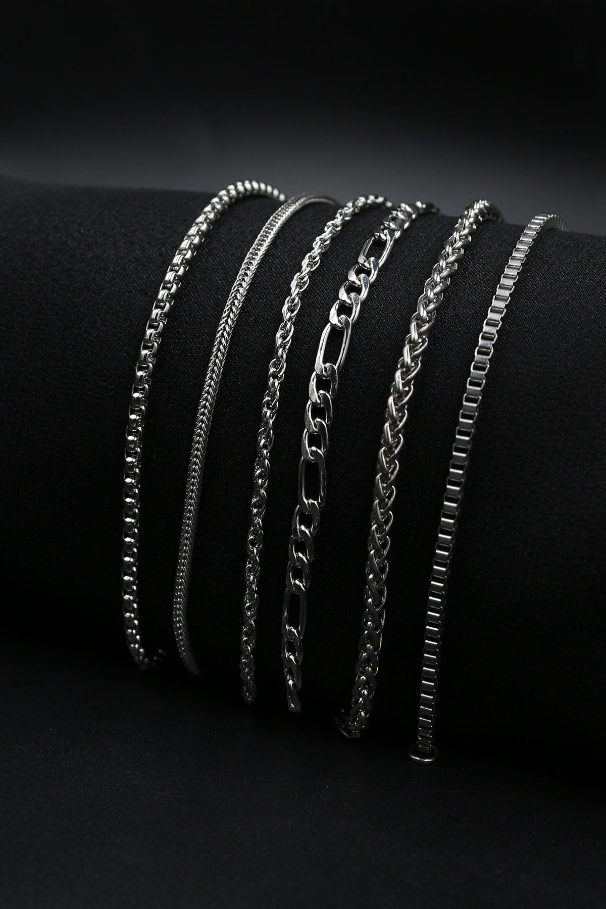 6 Pcs Chain Silver Color Men'S Bracelet Set