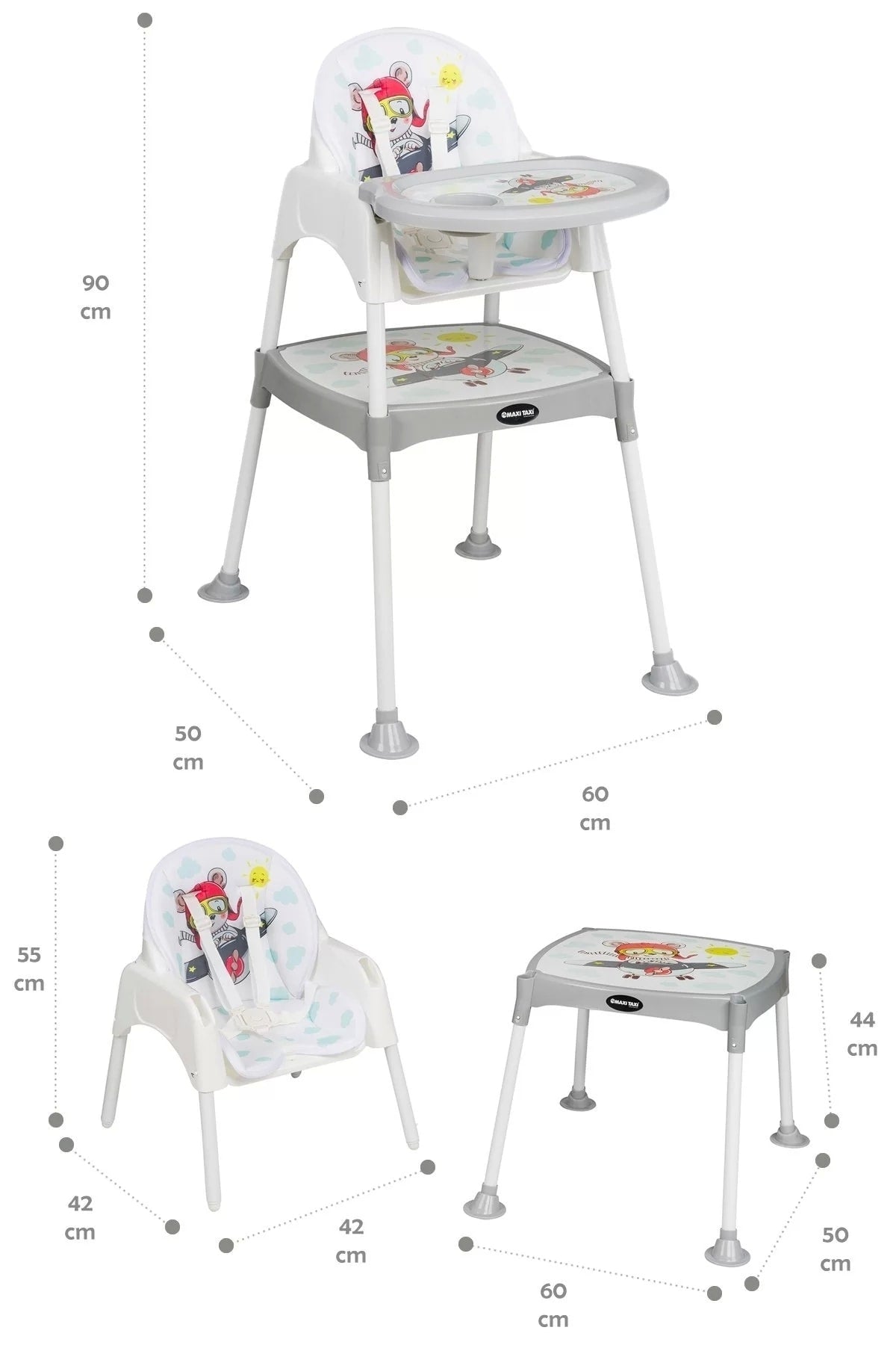 Baby Feeding 3In1 Desk Highchair Gray Airplane
