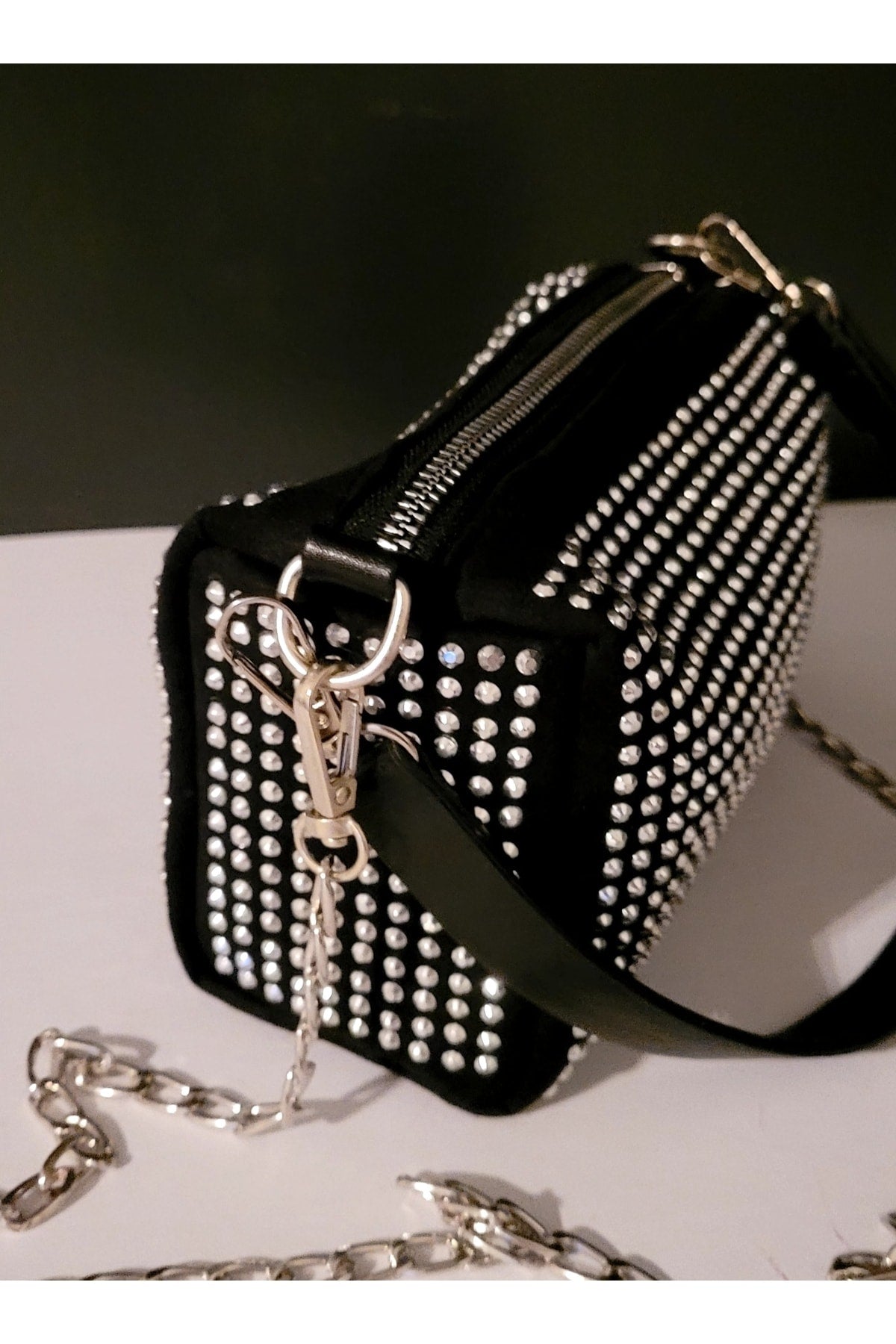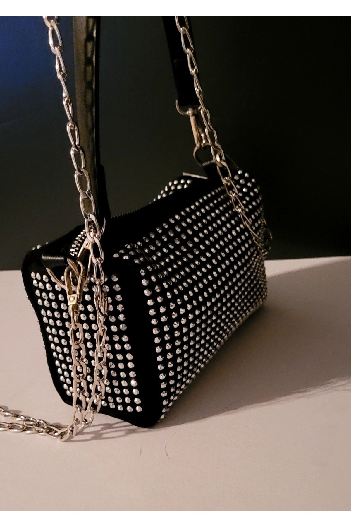 Bhm Mini Black Stone Nubuck Chain Hand And Shoulder Bag