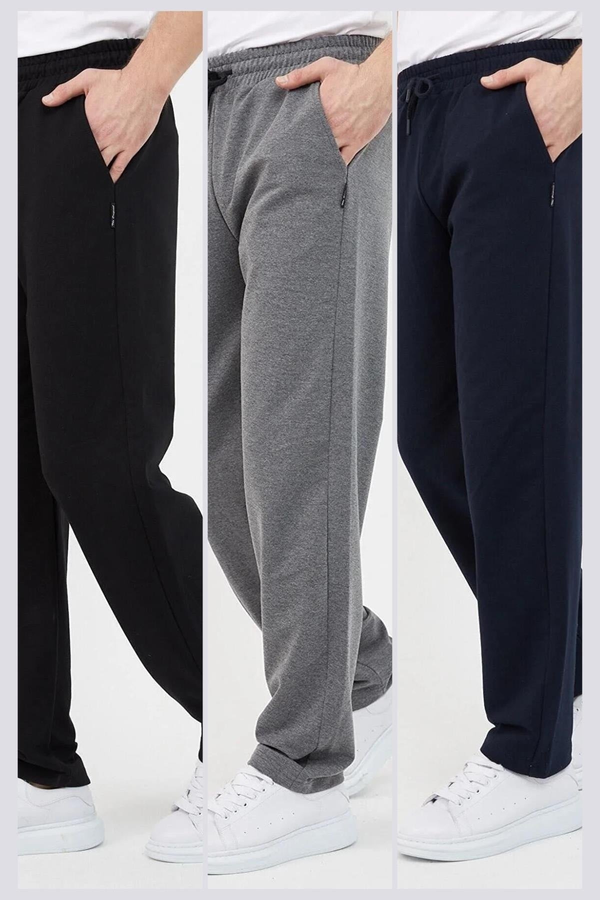 Black-Anthracite-Navy Blue Men'S Straight Leg Comfort Cut 3-Pack Sweatpants