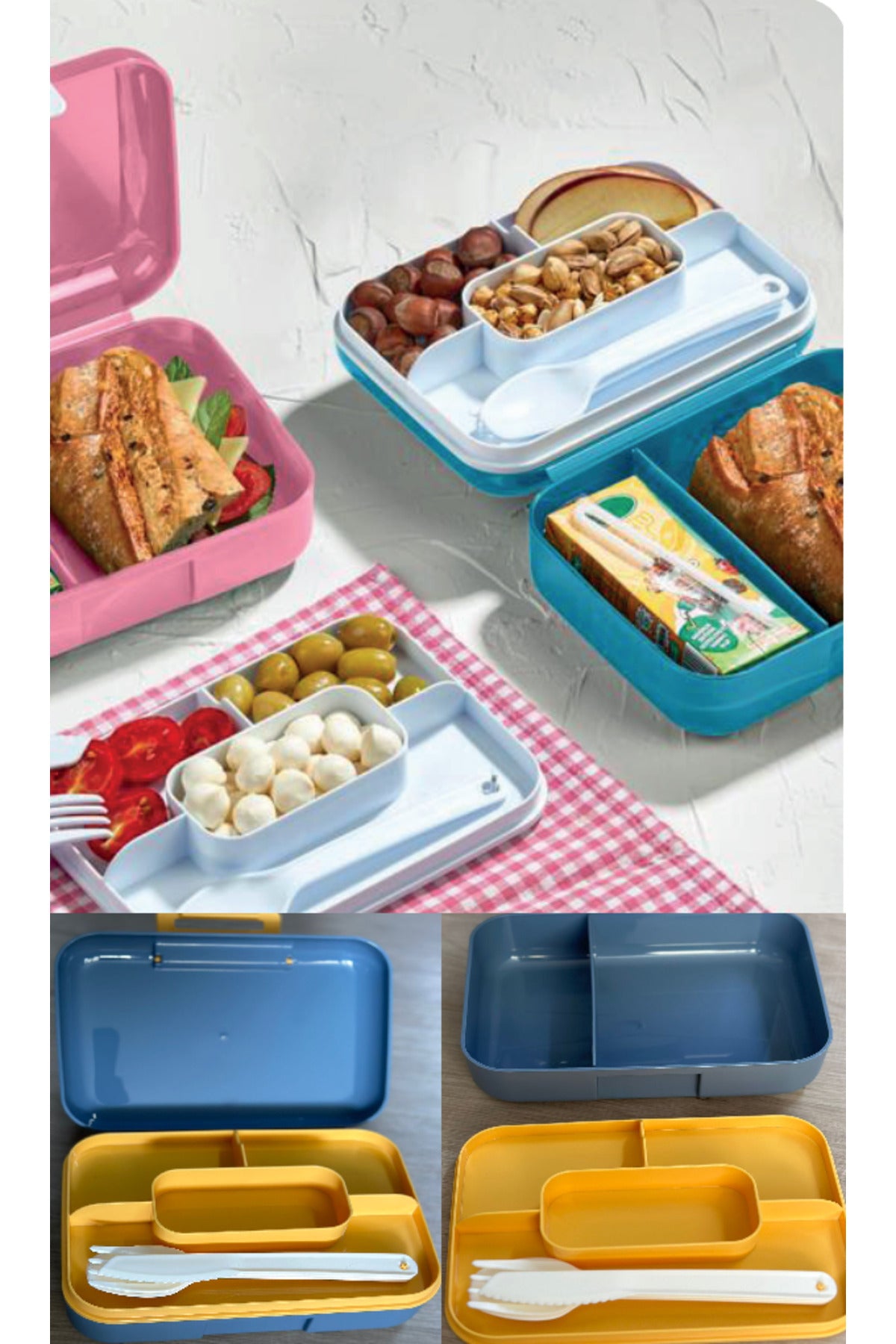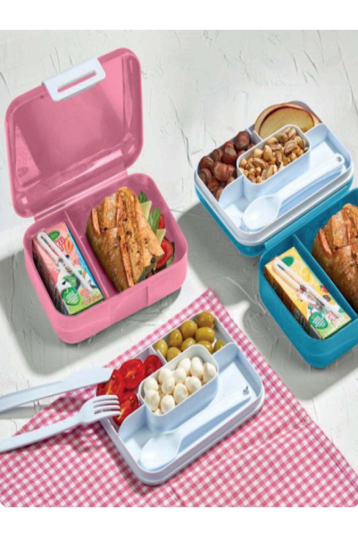 Blue 2-Layer Compartment Lockable Lunch Box And Spoon Set Snack Bread Storage Container