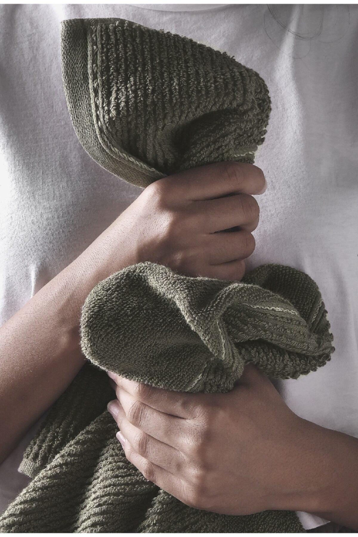 Oliva única Carmine: extra suave, moderna 100% algodón 50x90 cm. Toalla de mano / cara