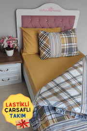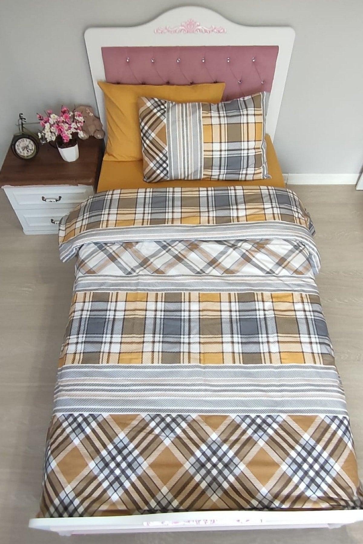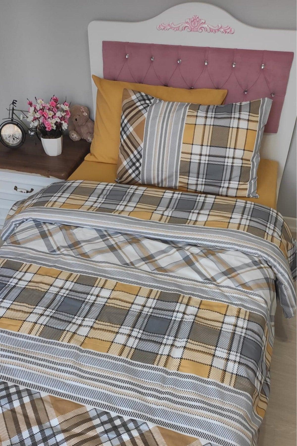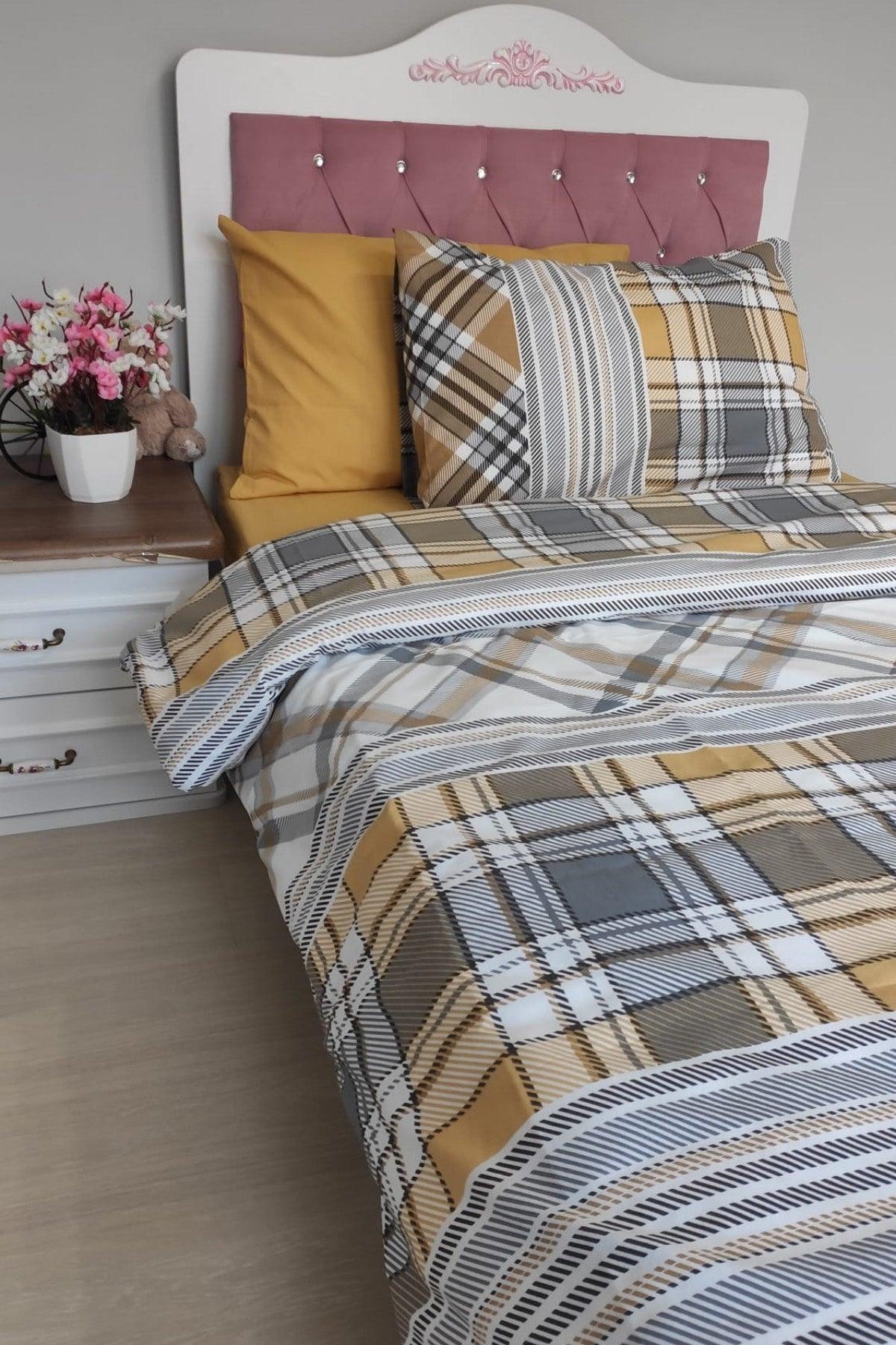 Conjunto de cubierta de un solo décimo de lino elástico de la mostaza a cuadros a cuadros a cuadros