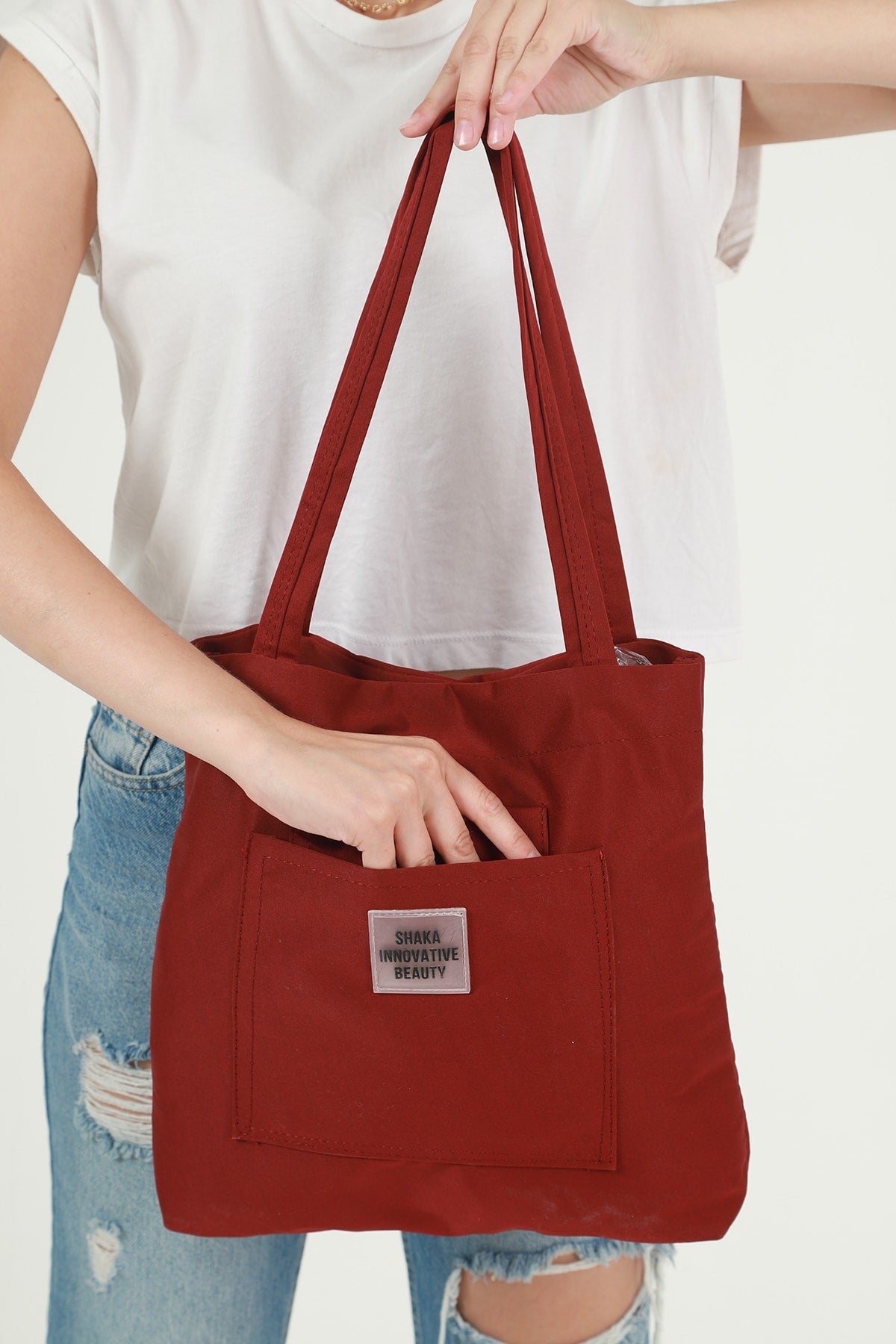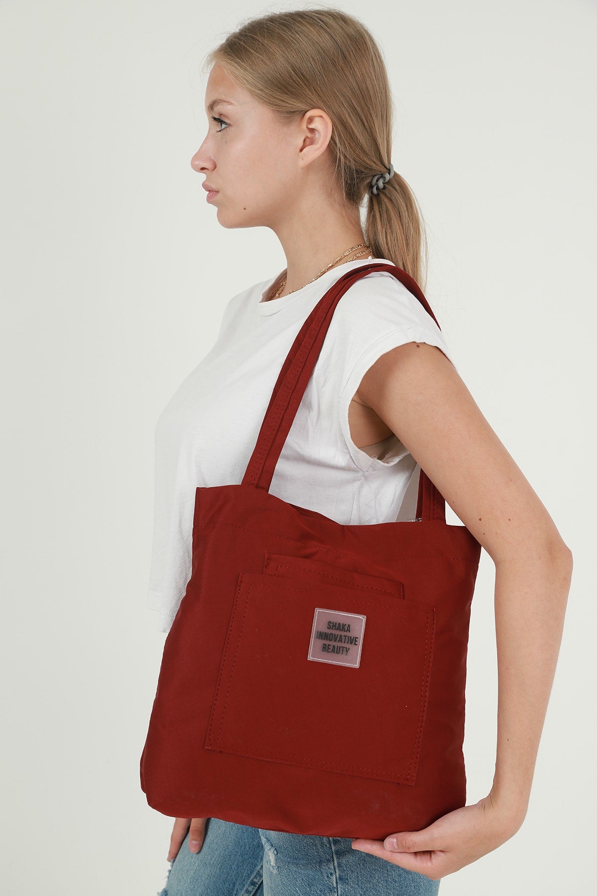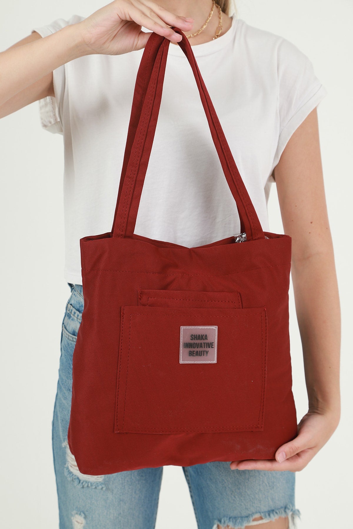 Claret Red U22 3-Compartment Front 2 Pocket Detailed Canvas Fabric Daily Women'S Arm And Shoulder Bag B:35 E:35