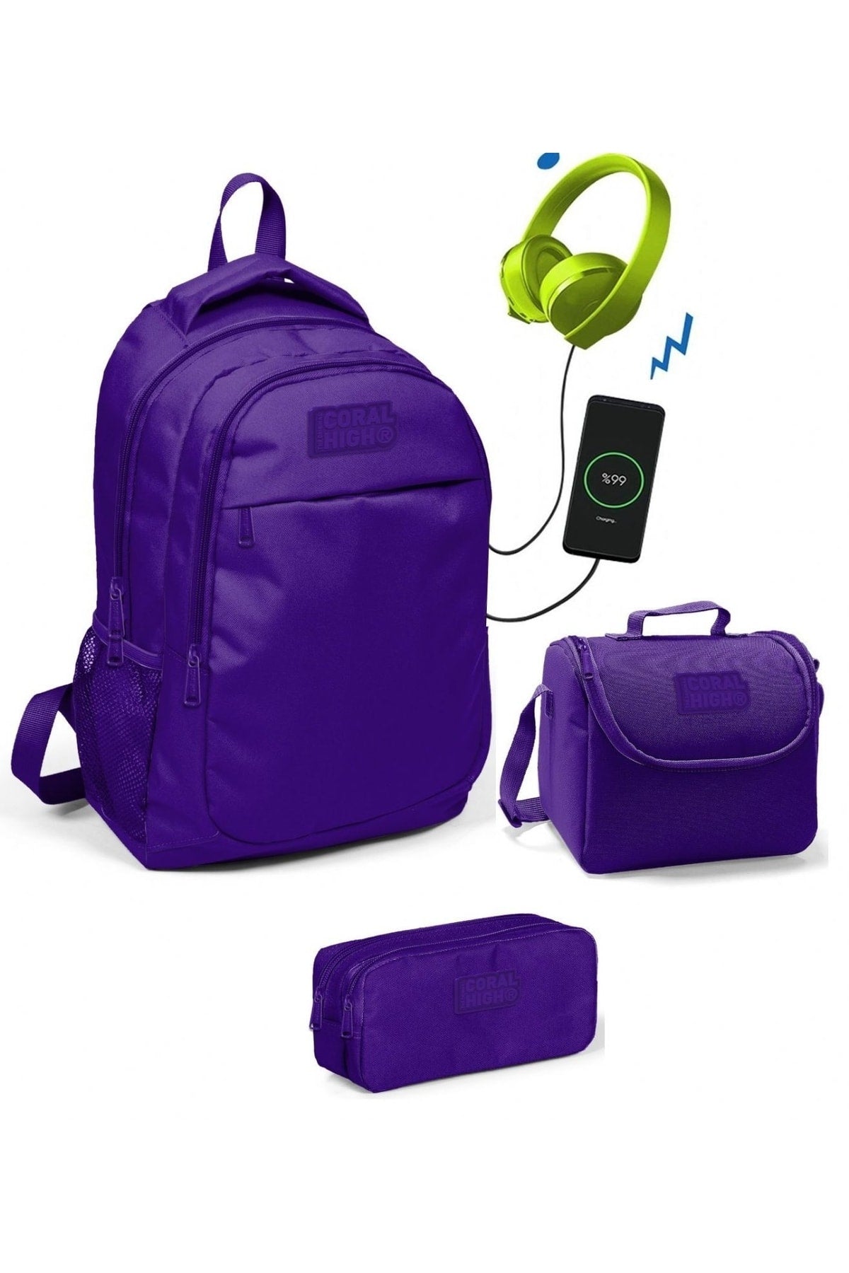 Coral High Girl'S Purple 3-Piece Bag Set - With Usb Socket
