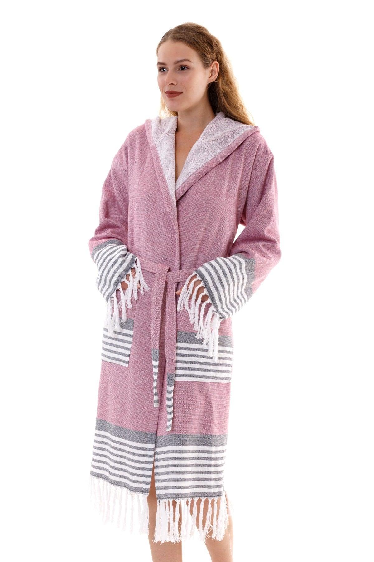 Algodón con capucha unisex rosa bata de baño | Bata de baño de tapones