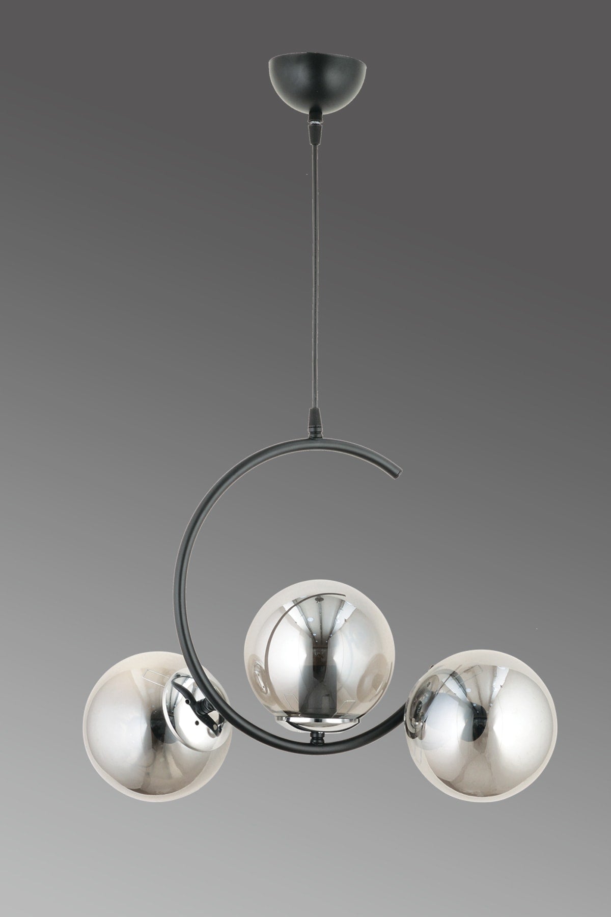 Crescent 3-Piece Modern Smoked Globe Glass Pendant Lamp Chandelier