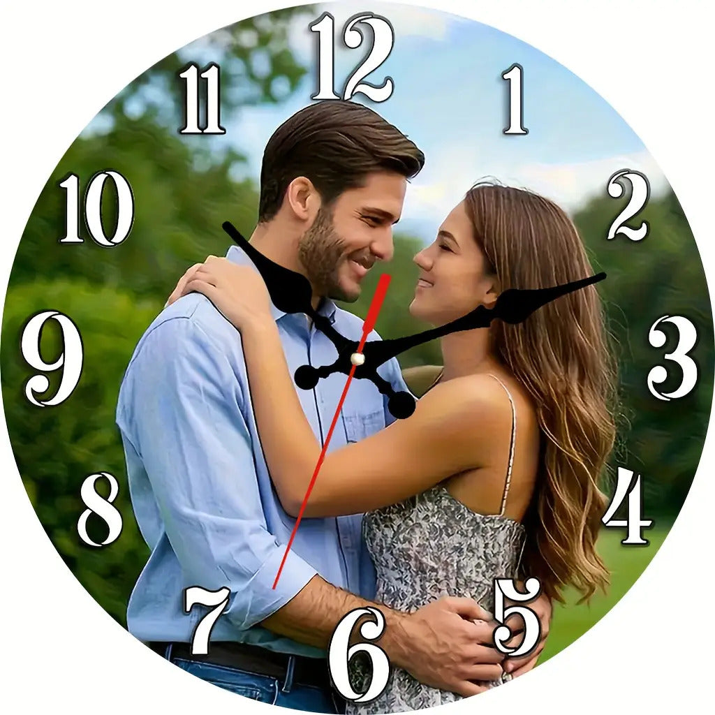 Custom Photo Silent Wall Clock - Personalized with Your Photo/Text/Number - 12-Inch Round Large Face Quartz Movement - Artificial Wood Frame - Photo Display for Wedding, Anniversary, Birthday Gift - Home/Office Decor (AA