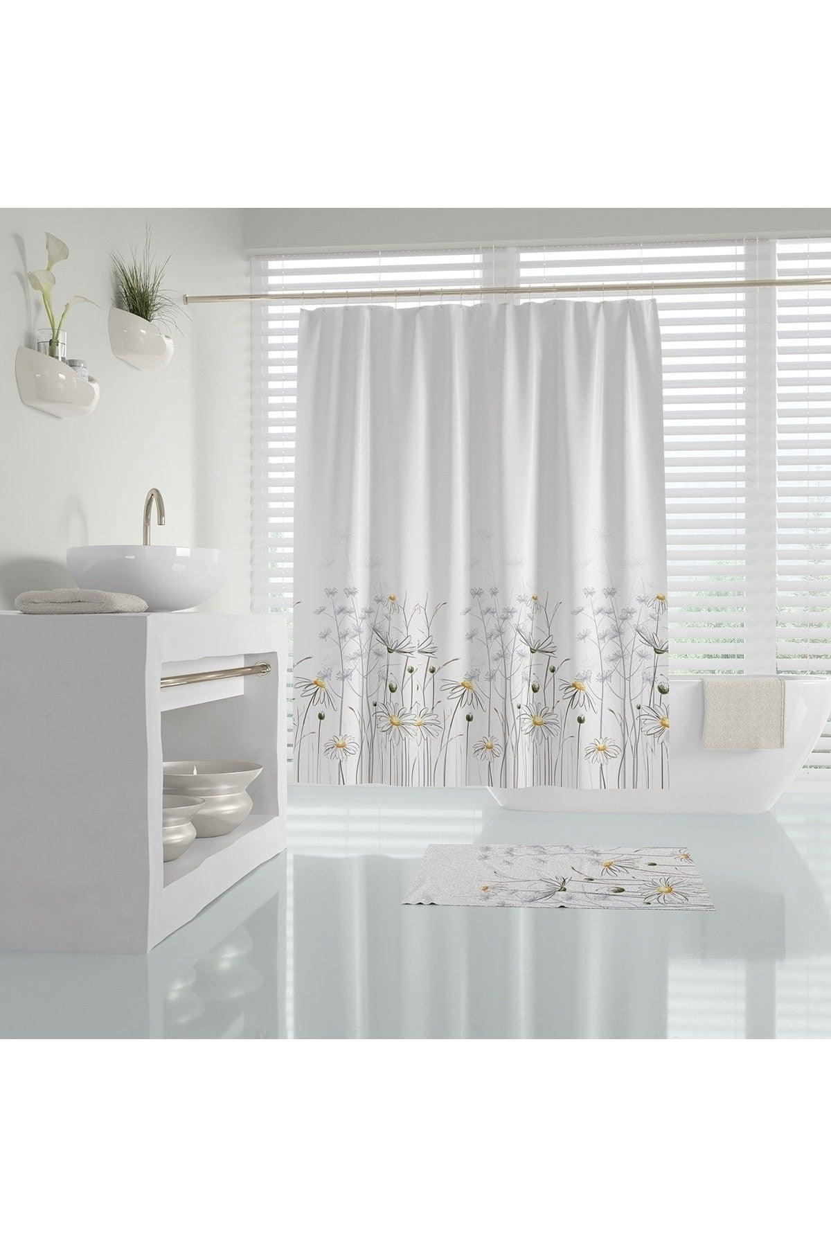 Cortina de ducha estampada de margarita, cortina de baño floral 12 piezas Cortina de bañera C de 180x200cm