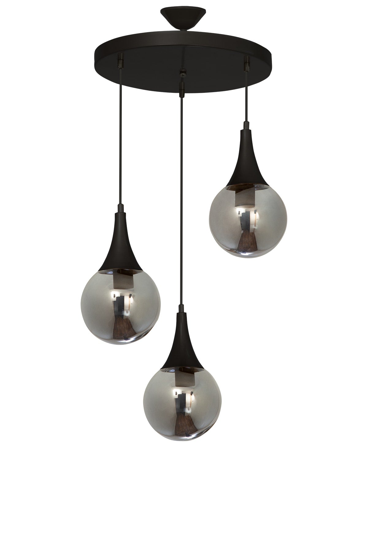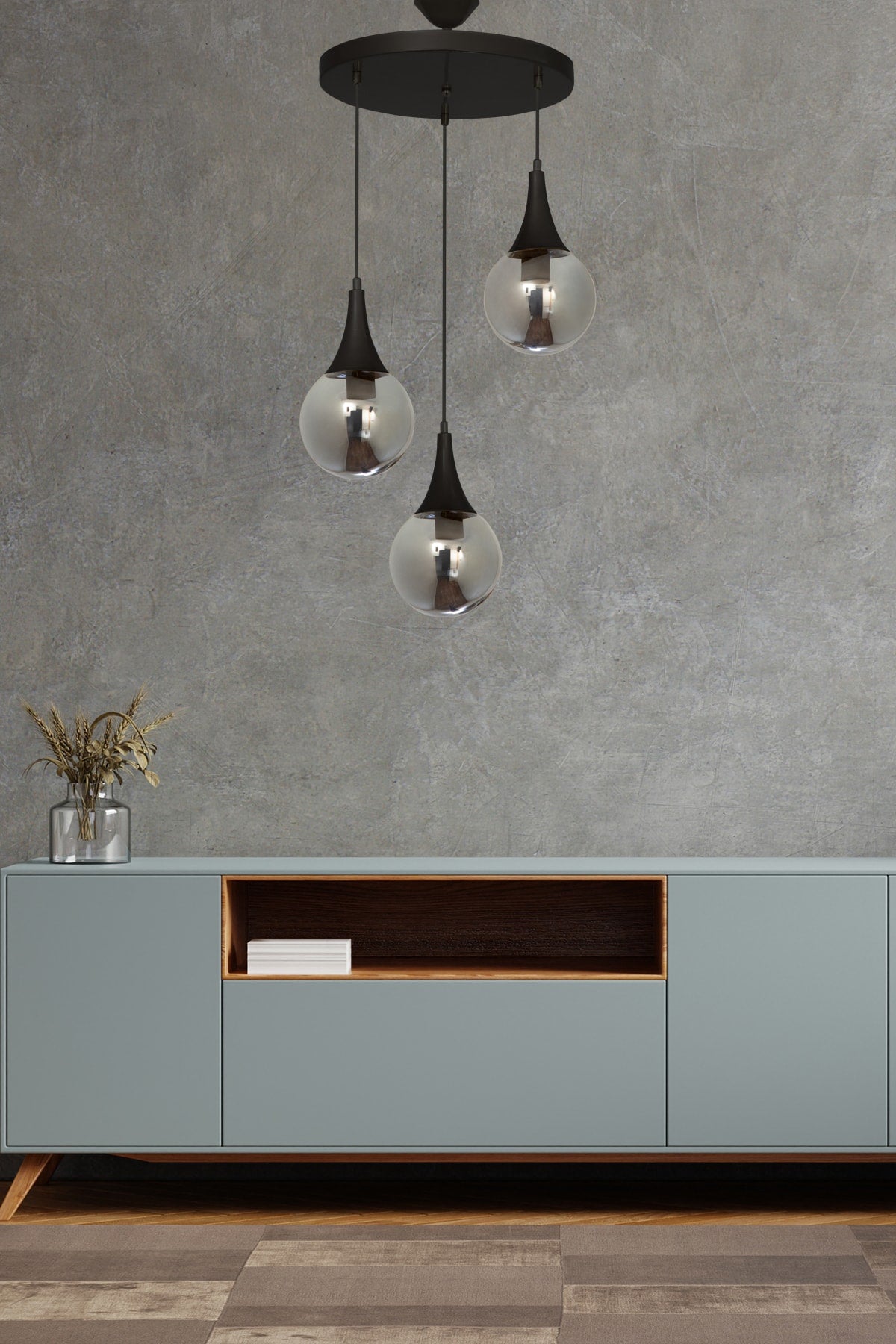 Damla 3-Piece Black Round Smoked Glass Pendant Lamp Chandelier