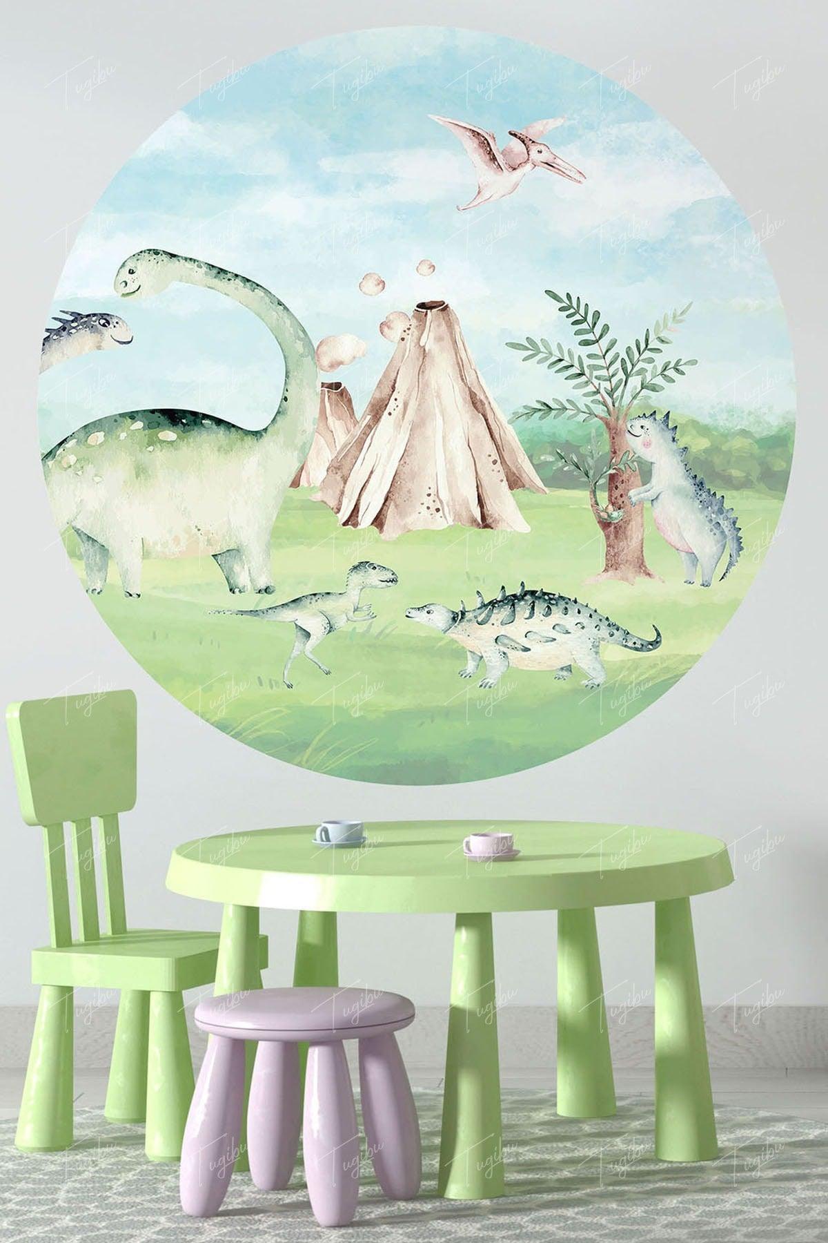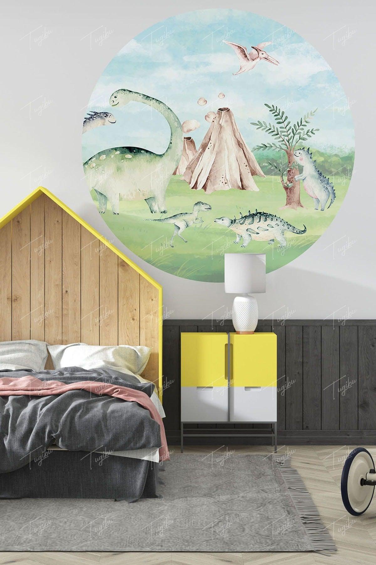 Pegatina de pared de círculo redondo con temática de dinosaurio
