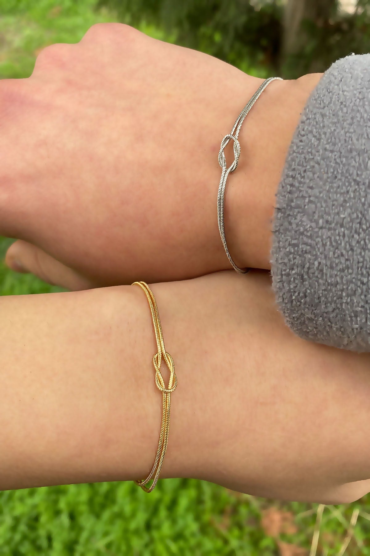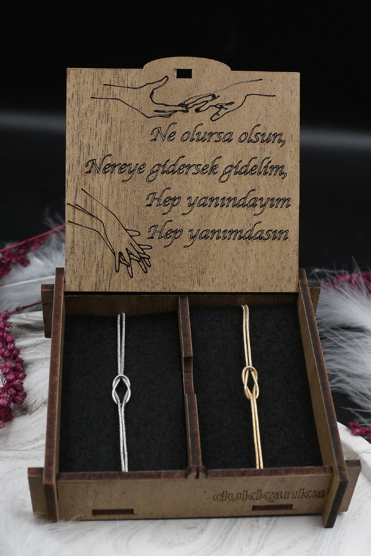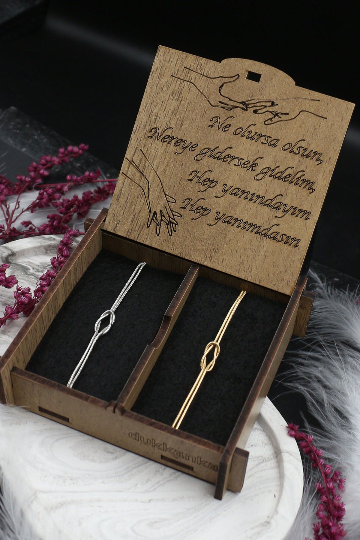 Double Knot Infinity Silver And Gold Plated Lover Bracelet With Wooden Written Gift Box