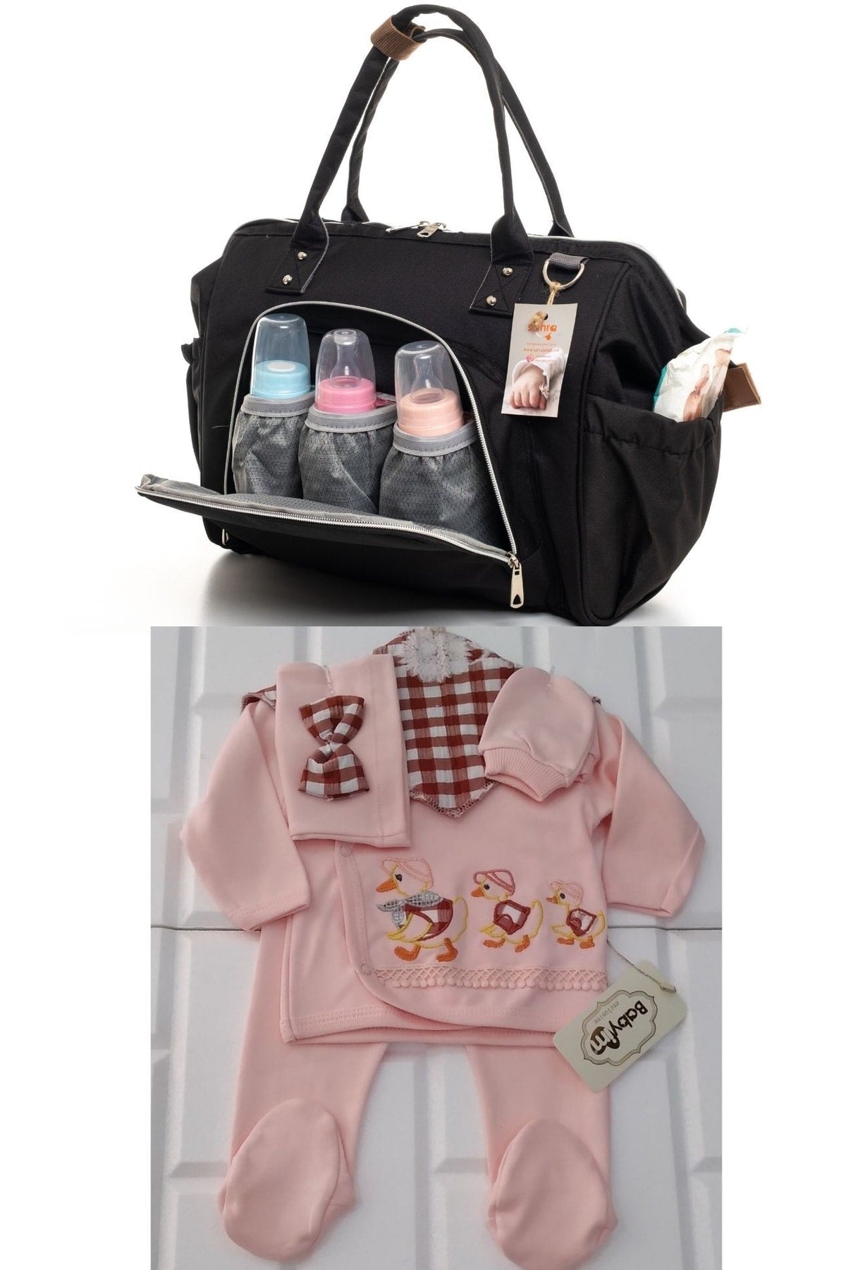 Baby care shoulder bag the feature of being used as a handbag, crossbody bag with straps and a normal flat shoulder bag, water-proof and stain-proof quality fabric made from first-class materials, the fabrics used in all models of baby care shoulder and backpack bags have breaking strength, tear strength, stitching. it is processed in our workshops after undergoing strength, pilling (pilling) and air permeability tests. our product is guaranteed for 2 years. liquid storage area with a thermal compartment with a volume of up to 3 feeding bottles, and a specially designed wet wipes section on the side of your bag, you can easily store your wet wipes and take them out whenever you want. the hanging mother baby care bag is designed for use as a mother baby bag and is a product that you can use comfortably with many different combinations. there is a zippered back compartment where you can easily store your personal belongings such as wallets and phones, and a section that you can fix on your luggage during your travels. top double zipper feature that can be opened in both directions, large interior volume that you can use comfortably with fixed quality metals, quality inner lining and interior of the bag with an interior compartment where you can put your different items, dimensions: width: 37 cm, length: 31 cm, width: 16 cm 100% cotton hospital exit seti is suitable for 0-3 months use. it is made of 100% cotton. it does not contain any carcinogenic substances. it is a 100% natural anti-allergic product. it has a comfortable and convenient design. with its soft fabric, it fits your baby's body and allows it to move comfortably. the snaps we use do not contain nickel, so your baby's health is safe. made in turkey. attention! washing instructions: in order to use our products for a longer time, please do not use bleaching detergent. do the washing, drying and ironing operations in reverse order. Improved version for clearer understanding and better search visibility. Suitable for users seeking detailed and reliable product information.