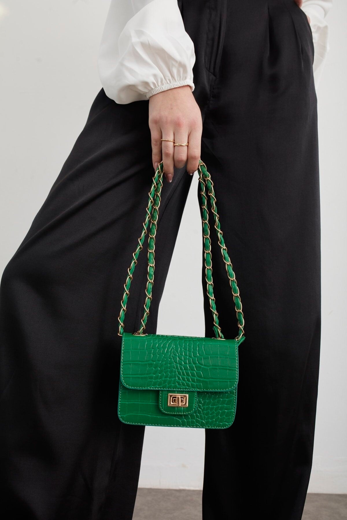 Green Women'S Crocodile Patterned Mini Shoulder Bag