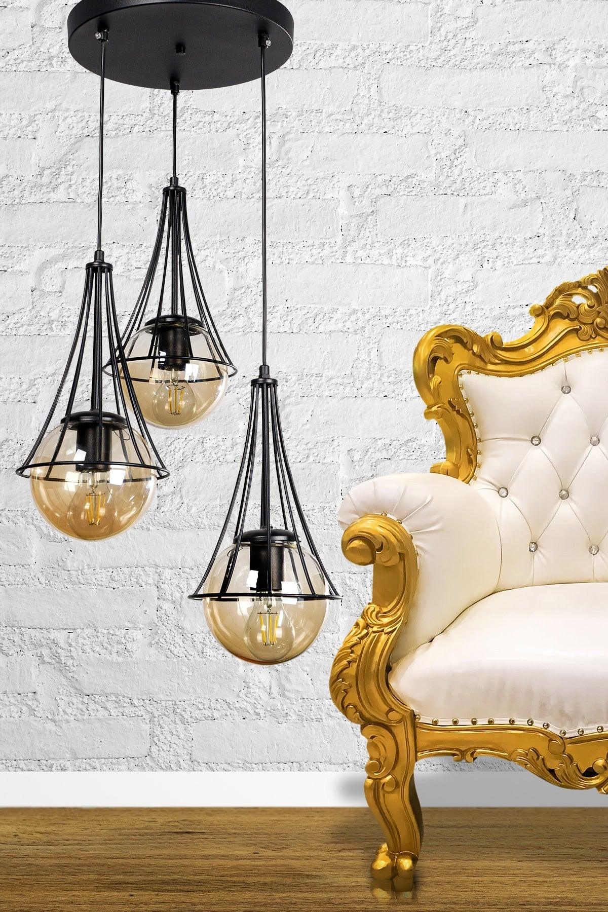 Lapis 3rd Black-honey Globe Glass Chandelier - Swordslife