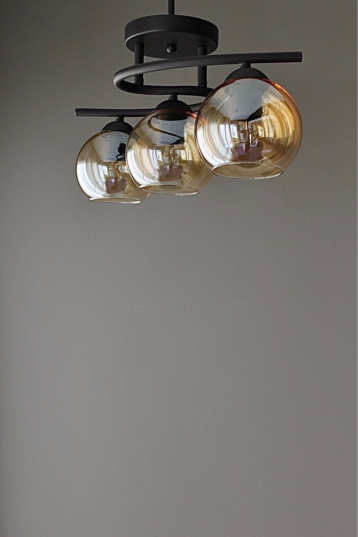 Lighting Modern Black Honey Glass Living Room Poyraz 3-Plus Chandelier