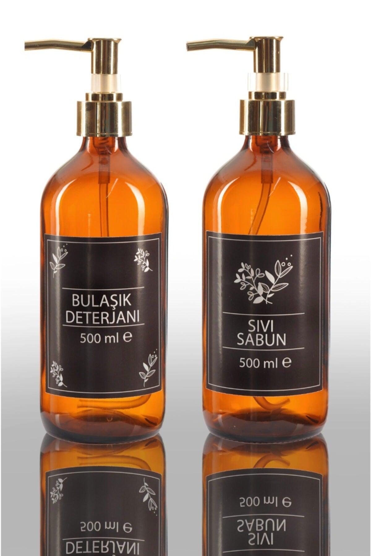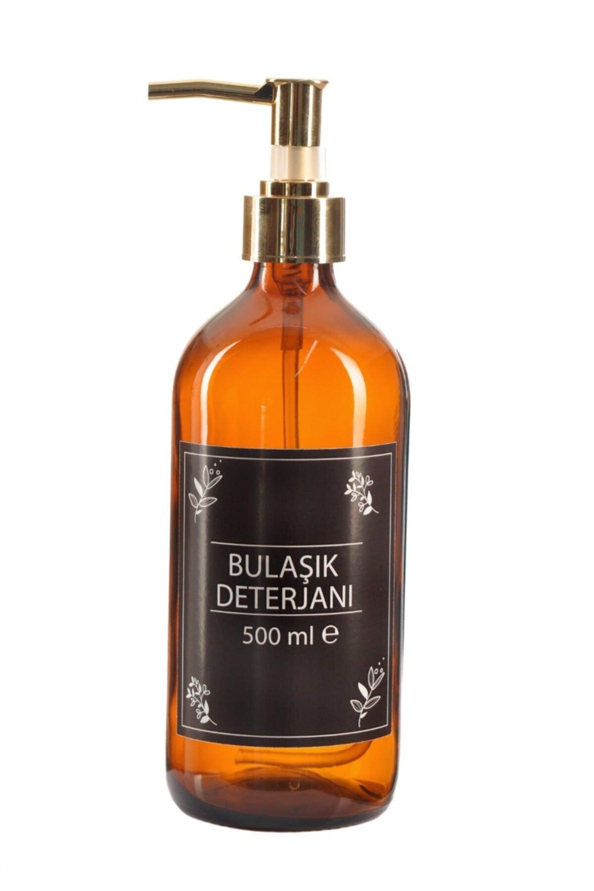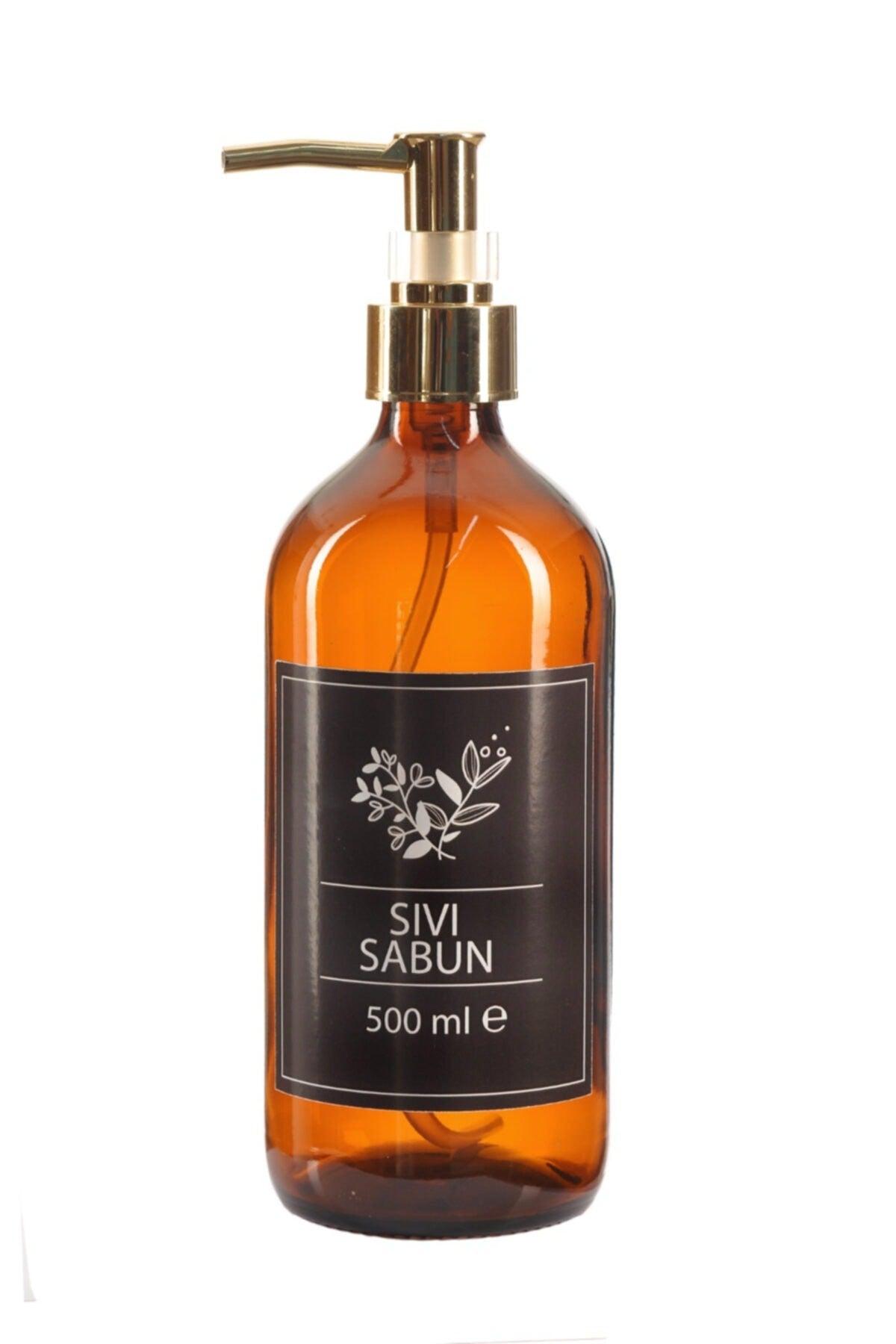 Dispensador de jabón líquido y plato de vidrio ámbar 500 ml (bomba de oro)