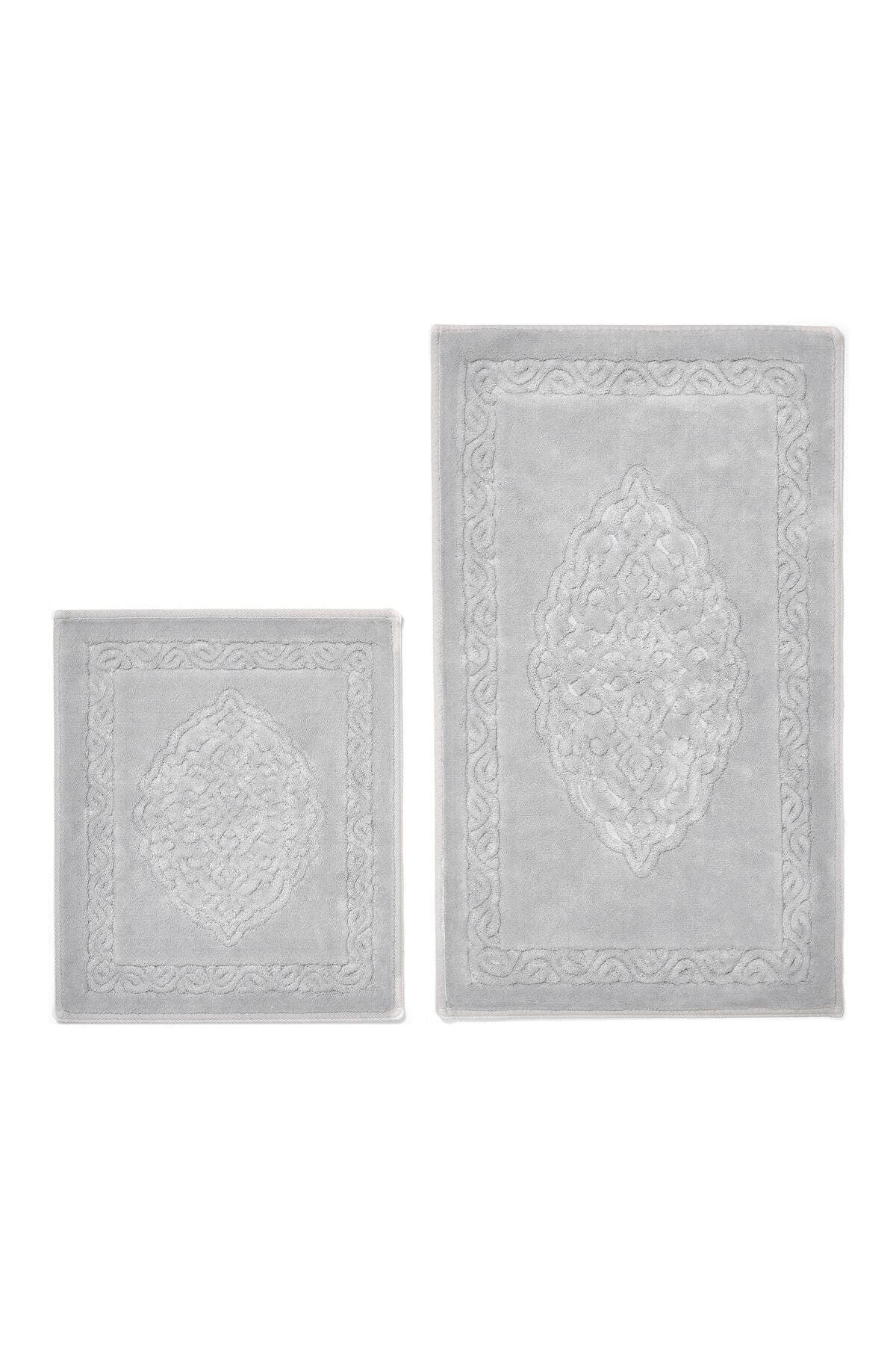 Juego de asiento de inodoro de algodón de loto de 2 piezas, juego de alfombrillas de baño gris