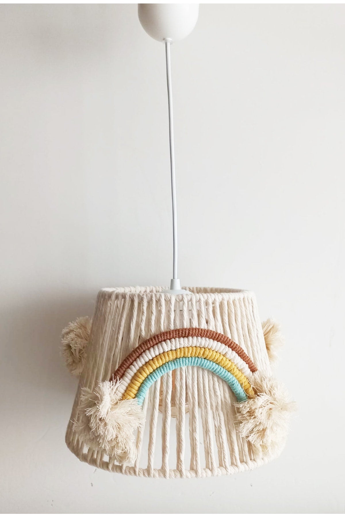 Macrame String Wrap Rainbow Appliqued Handmade Pompom Baby And Children'S Room Chandelier (18)