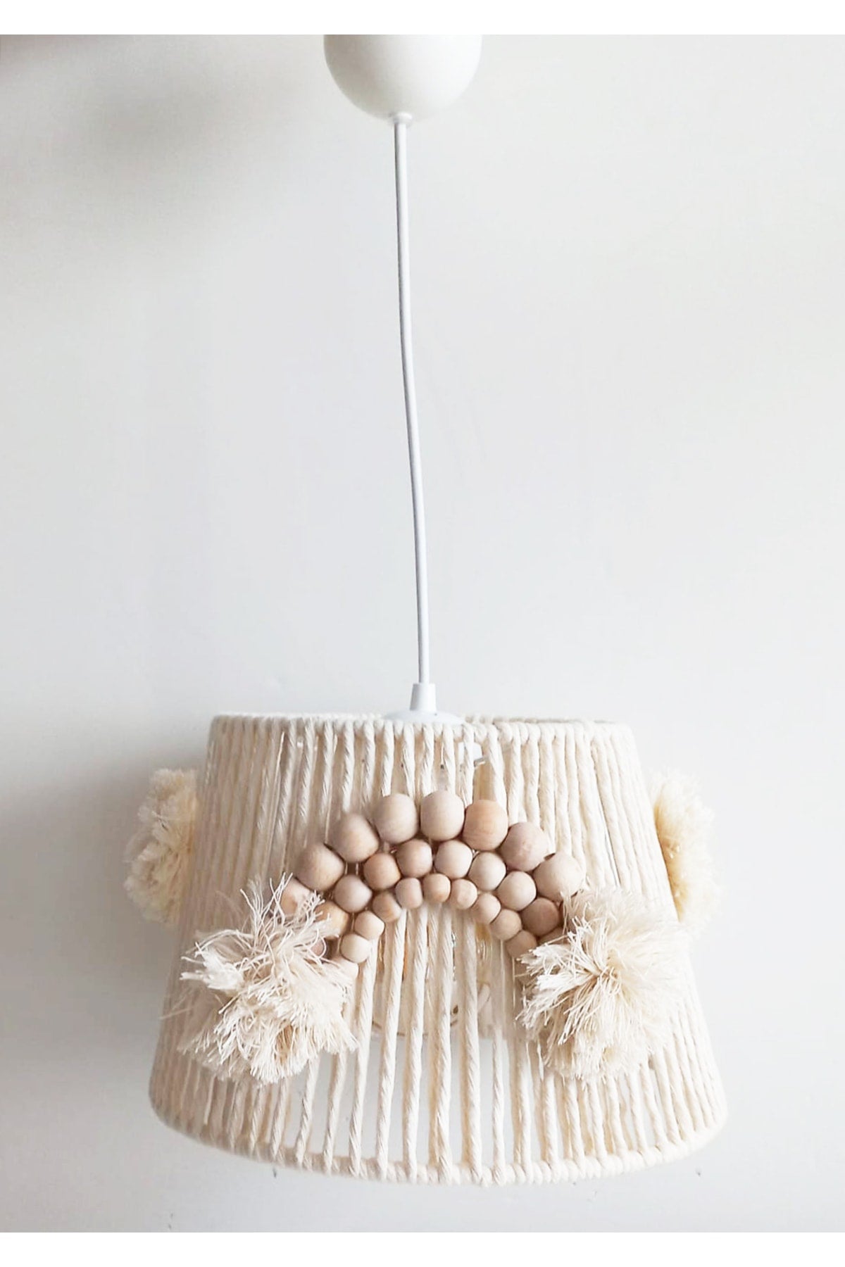 Macrame String Wrapped Wooden Beaded Rainbow Applique Handmade Pompom Kids And Baby Room Chandelier