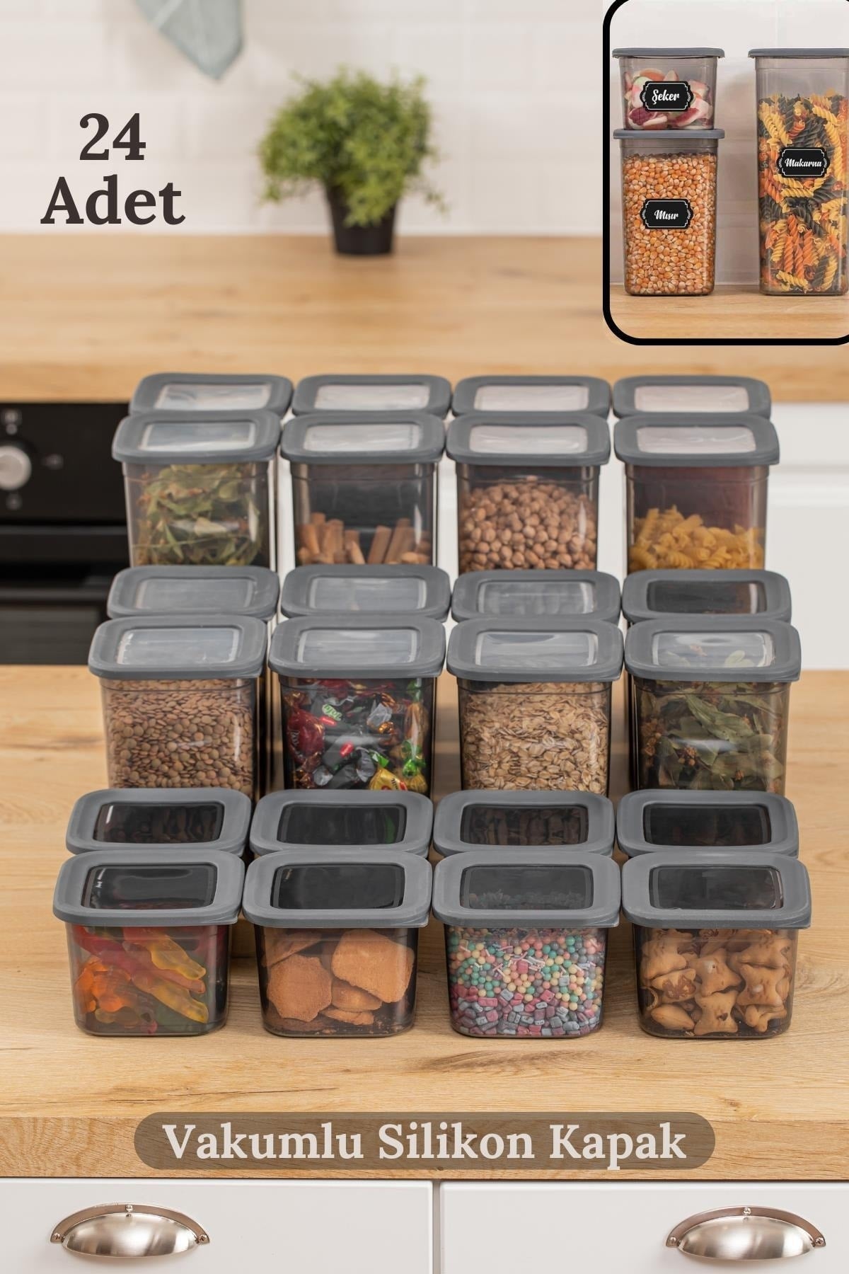 Mega Food Storage Container Set Of 24 Vacuumed Silicone Lids - 8X(0.65 Lt - 1.3 Lt - 1.9 Lt)