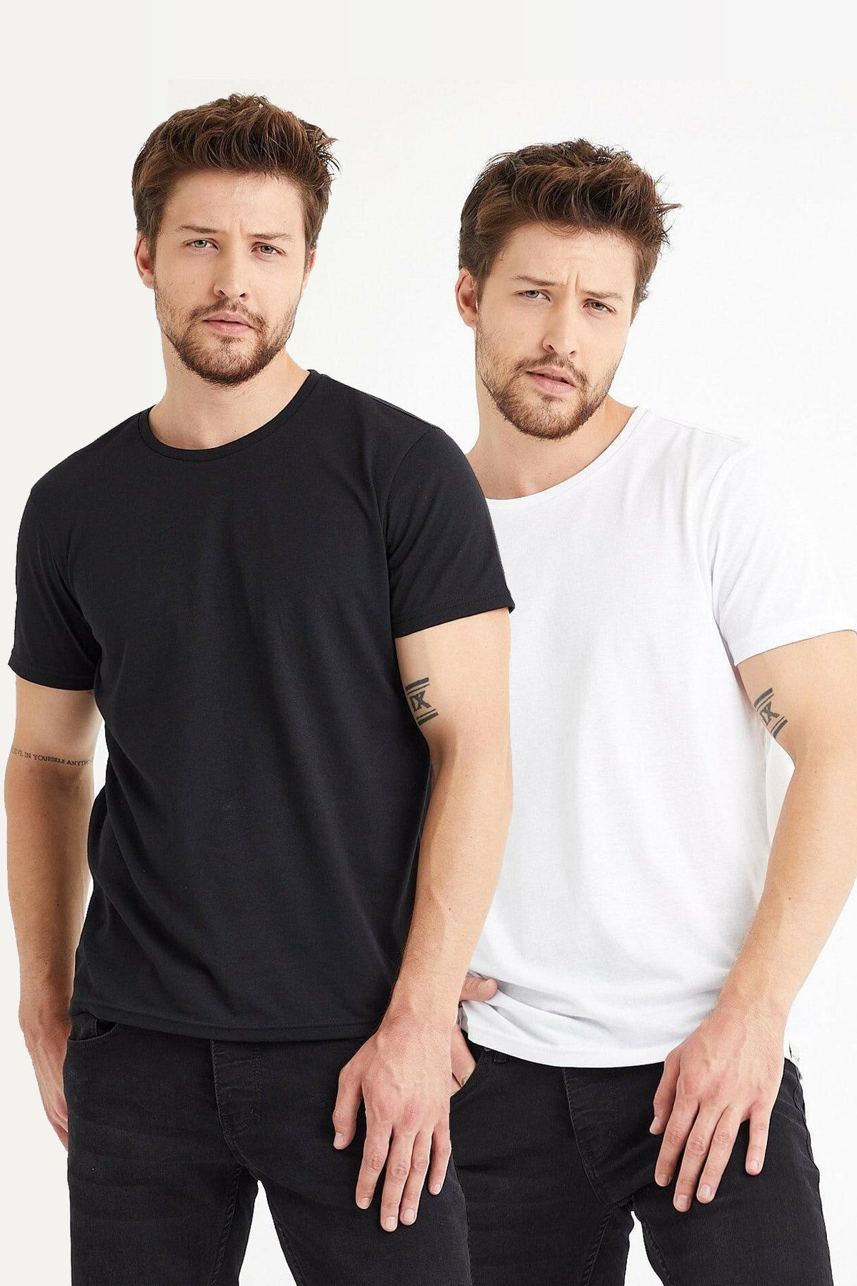 Men'S Black And White 2-Pack Regular Crew Neck T-Shirt