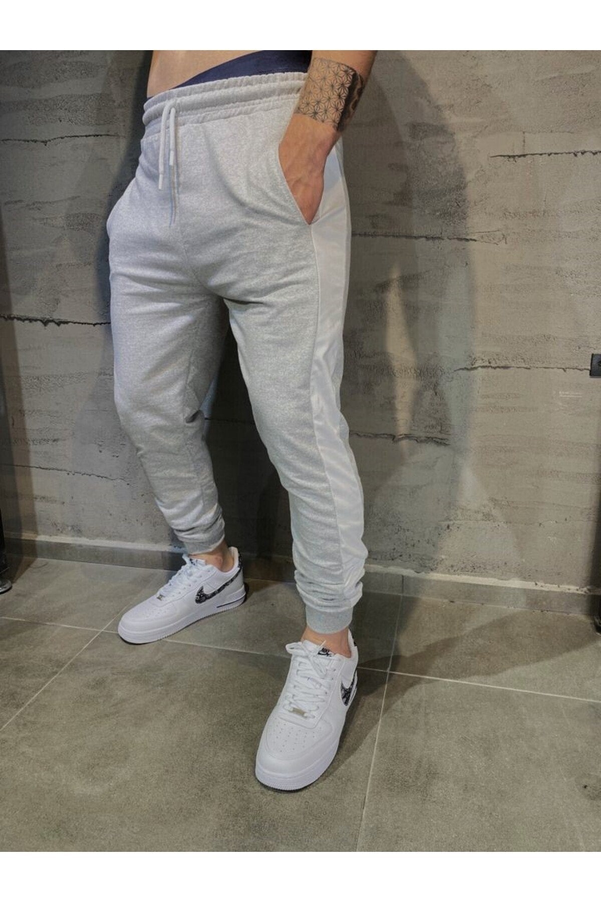 Men'S Gray White Striped Sweatpants Cotton Elastic Leg