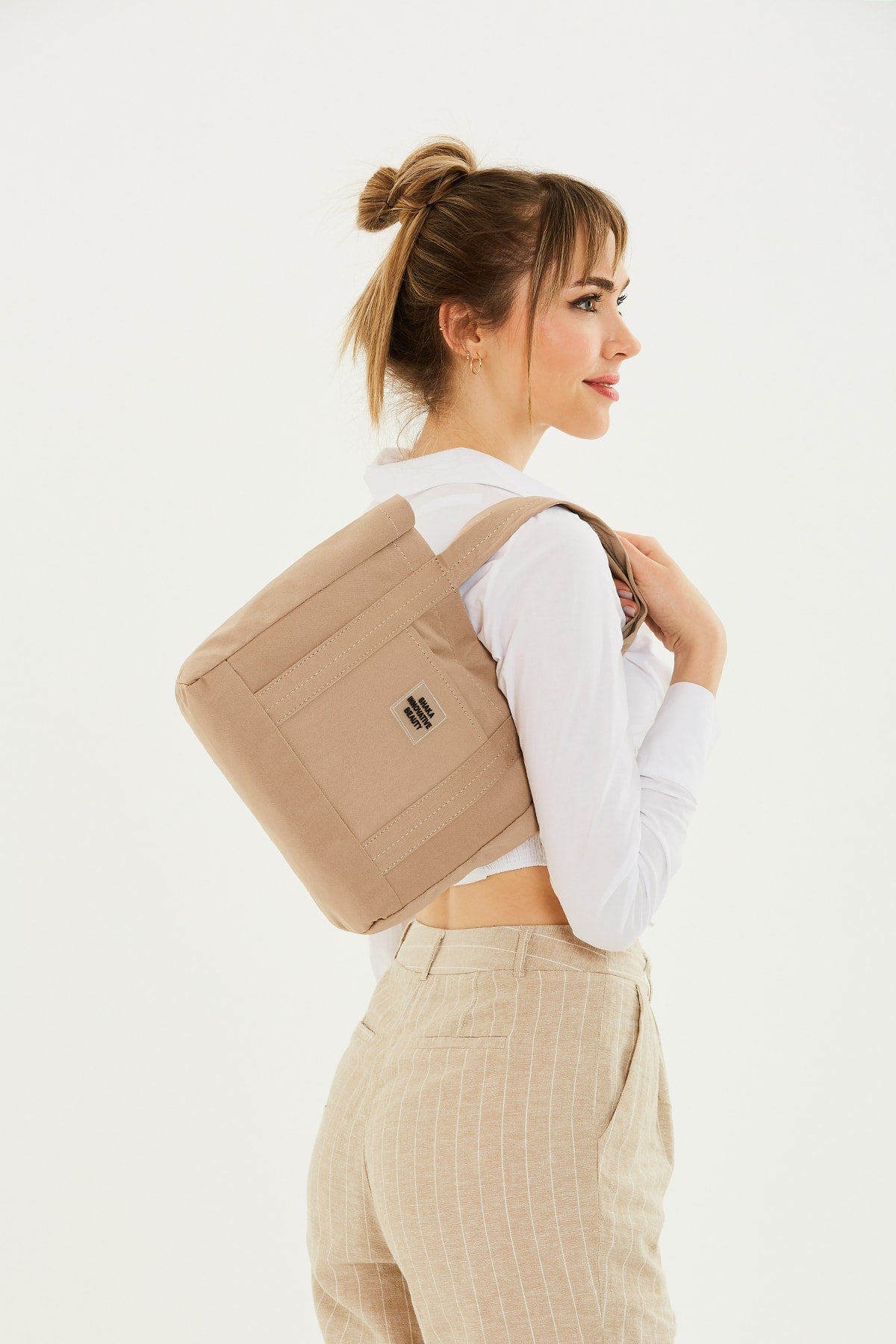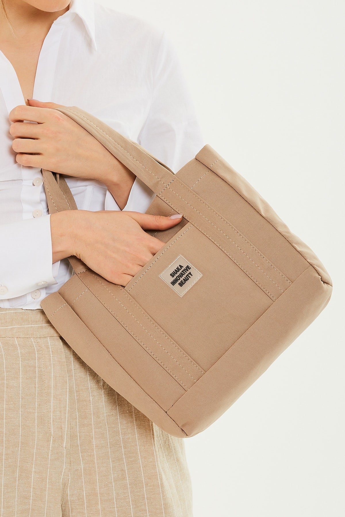 Mink U37 Snap Snap Closure 2 Compartment Front Pocket Detailed Canvas Fabric Daily Women'S Arm And Shoulder Bag U