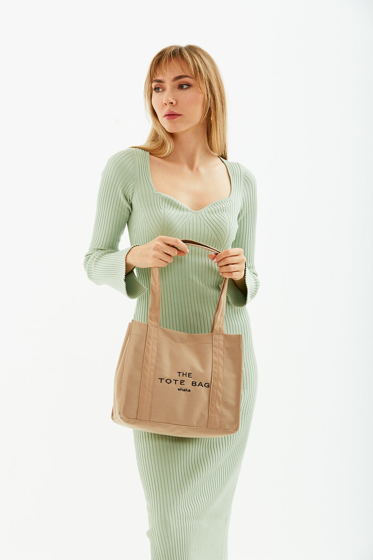 Mink U45 Snap Closure The Tote Bag Embroidered Canvas Fabric Daily Women'S Arm And Shoulder Bag 25X3