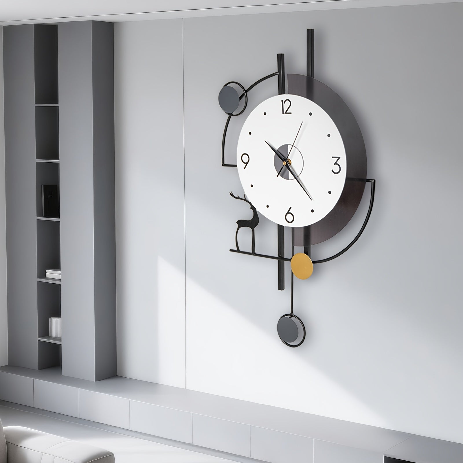 Modern Art Geometric Wall Clock with Deer Silhouette, 23.23"×13.19", Creative Black/White/Golden Minimalist Design, Perfect for Scandinavian & Contemporary Interiors – Local Warehouse (Christmas, Halloween)