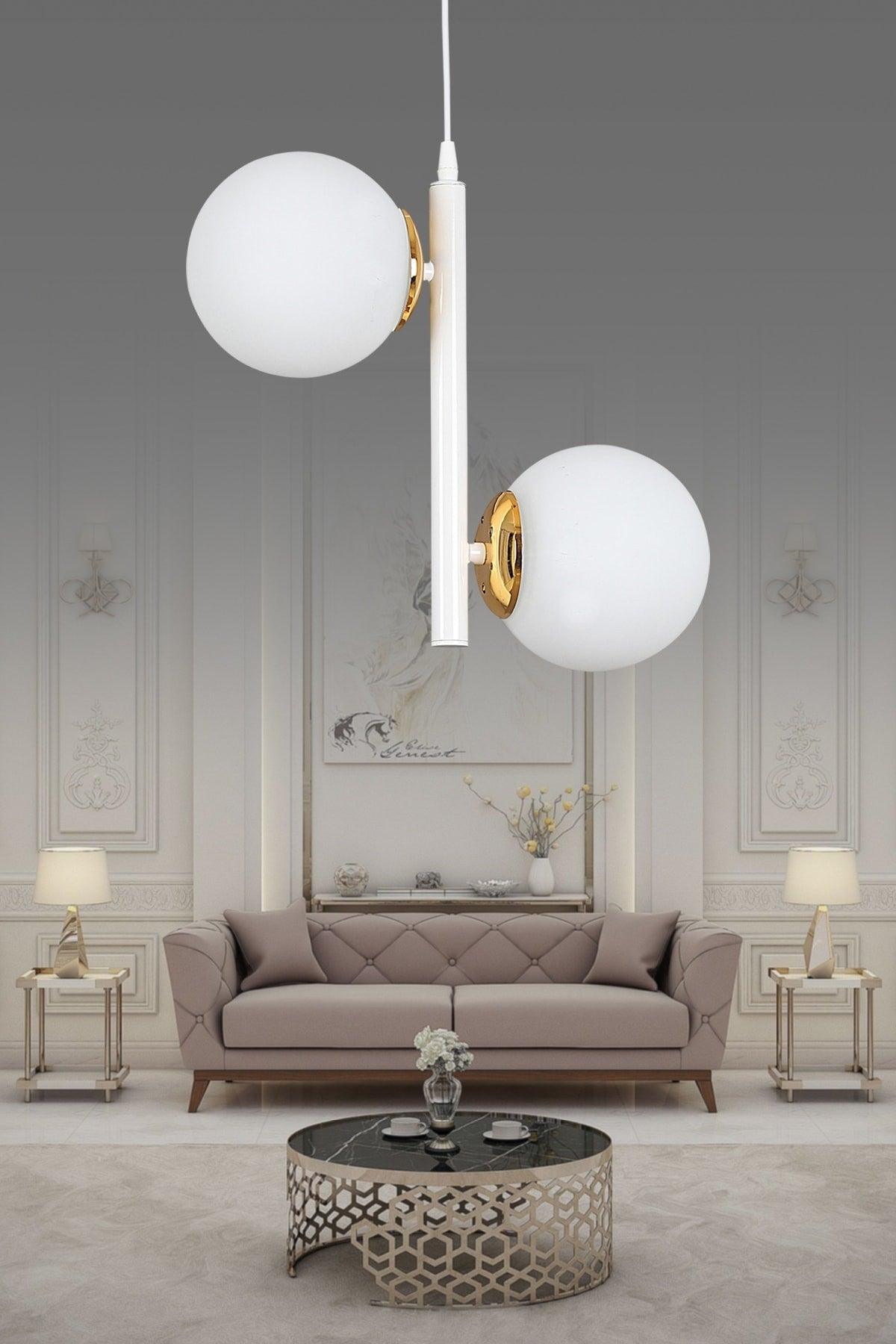 Modern White 2 Piece White Globe Glass Chandelier - Swordslife