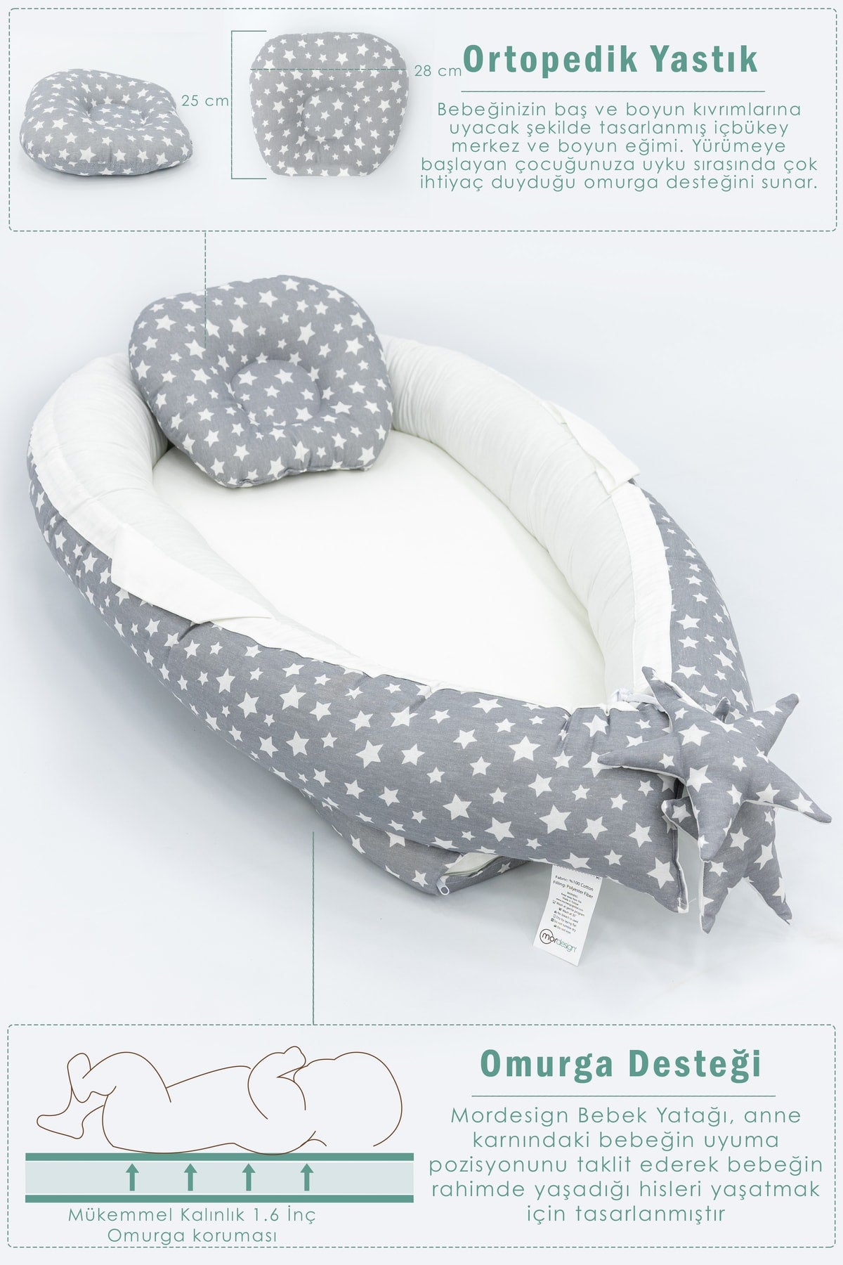 Orthopedic Baby Mattress, Pique And Stroller Accessories Set Of 6, Gray Color Stars Pattern