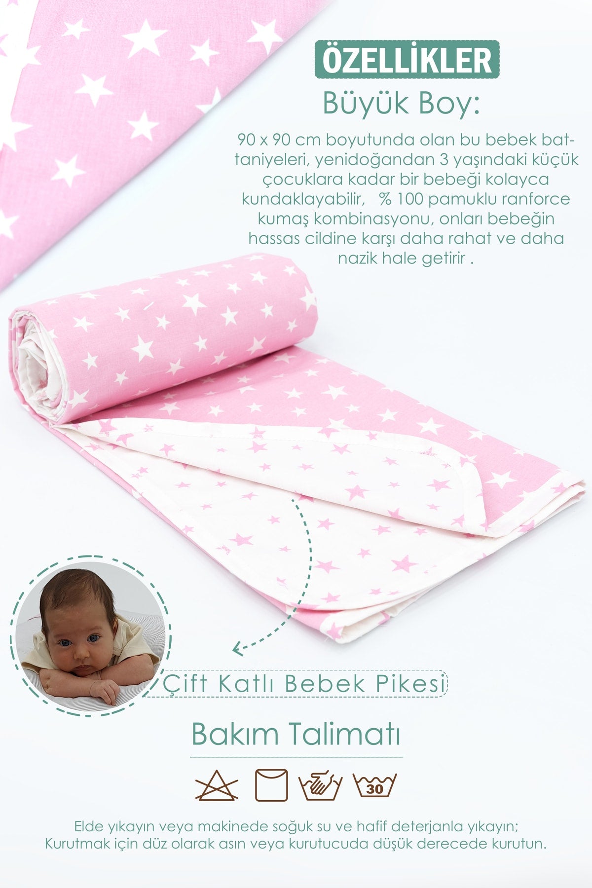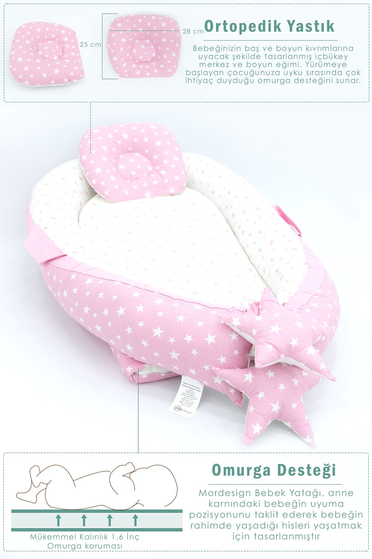 Orthopedic Baby Mattress, Pique And Stroller Accessories Set Of 6, Pink Color Stars Pattern