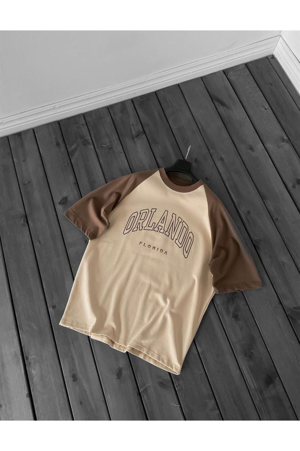 Plus Size Orlando Florida Printed Beige Oversize T-Shirt