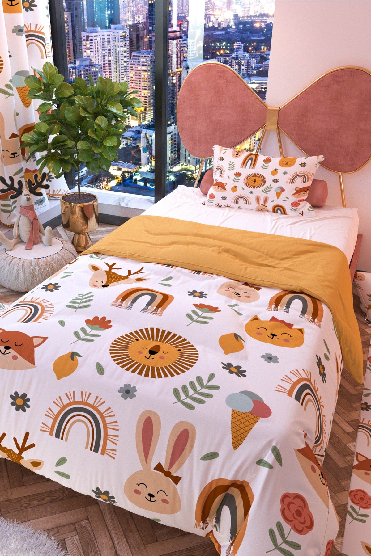 Rainbow And Animals Double Sided Kids Duvet Cover Set Polycotton