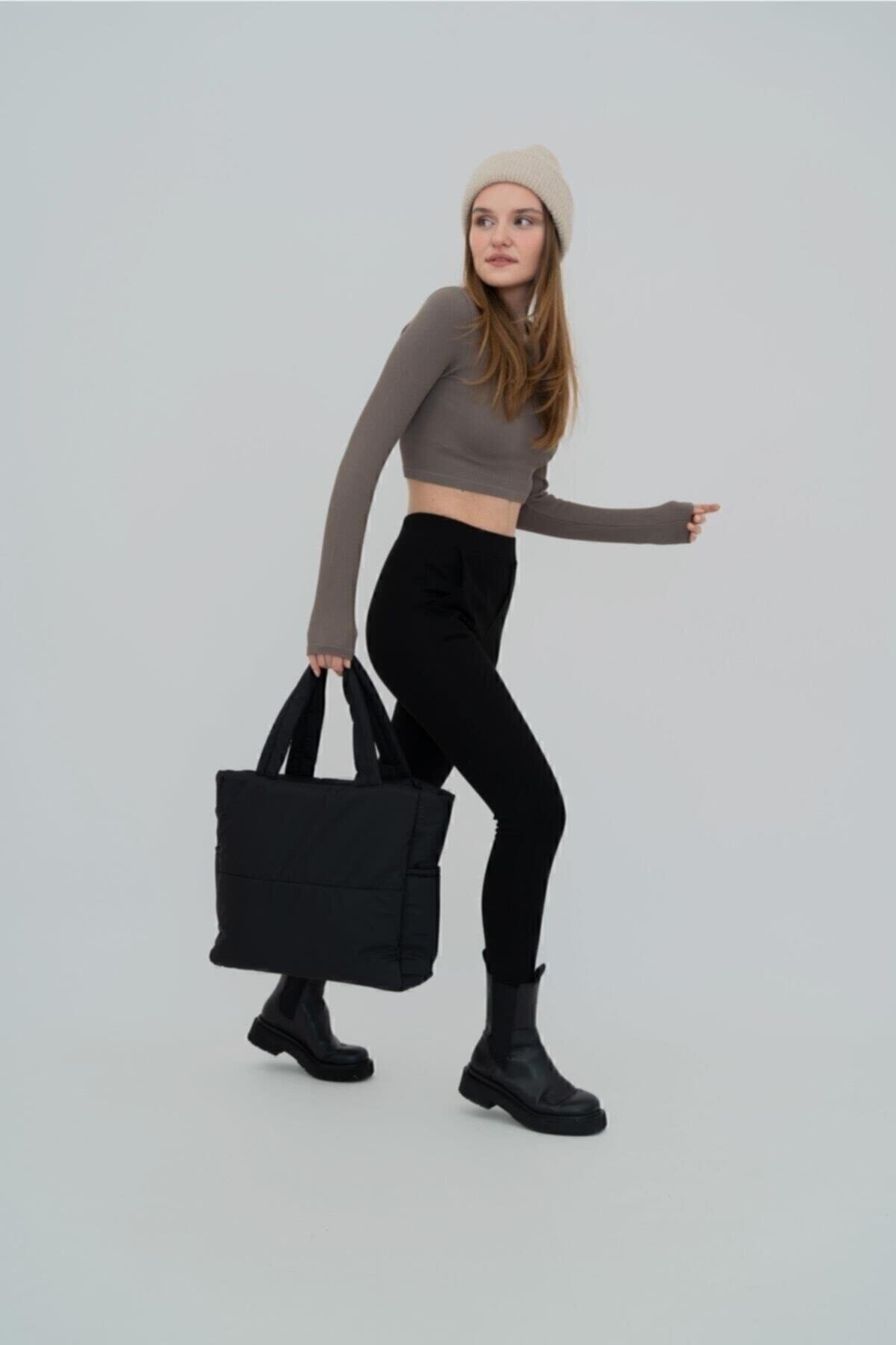 Samilon Embossed Puff Fabric Shopper Bag Napoli Black