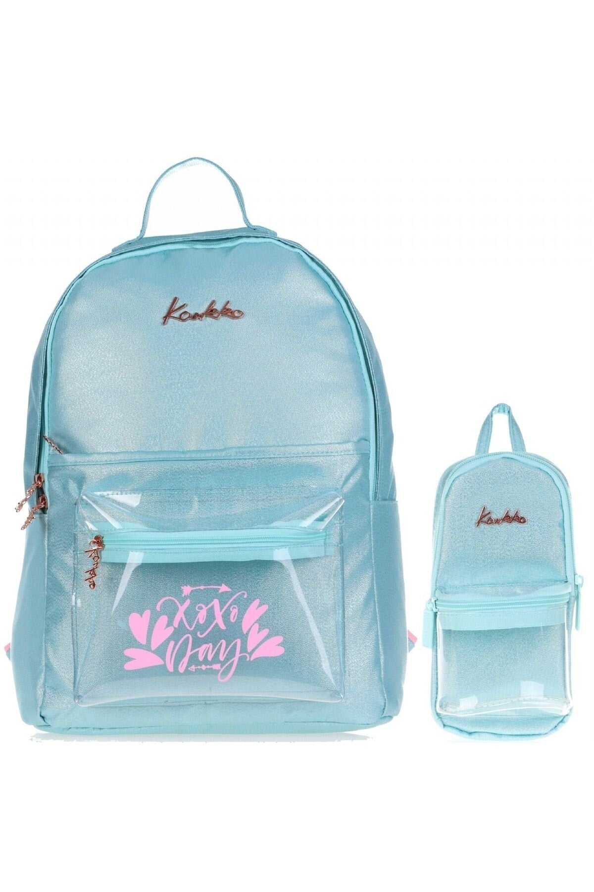 Transparent Turquoise Xoxo School Backpack And Pencil Holder Set - Girls