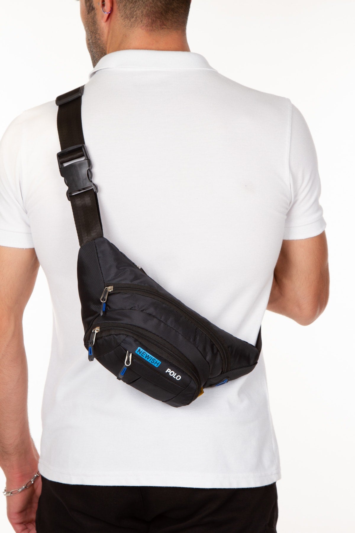 Waist And Shoulder Bag With Headphone Outlet Waterproof Black Freebag