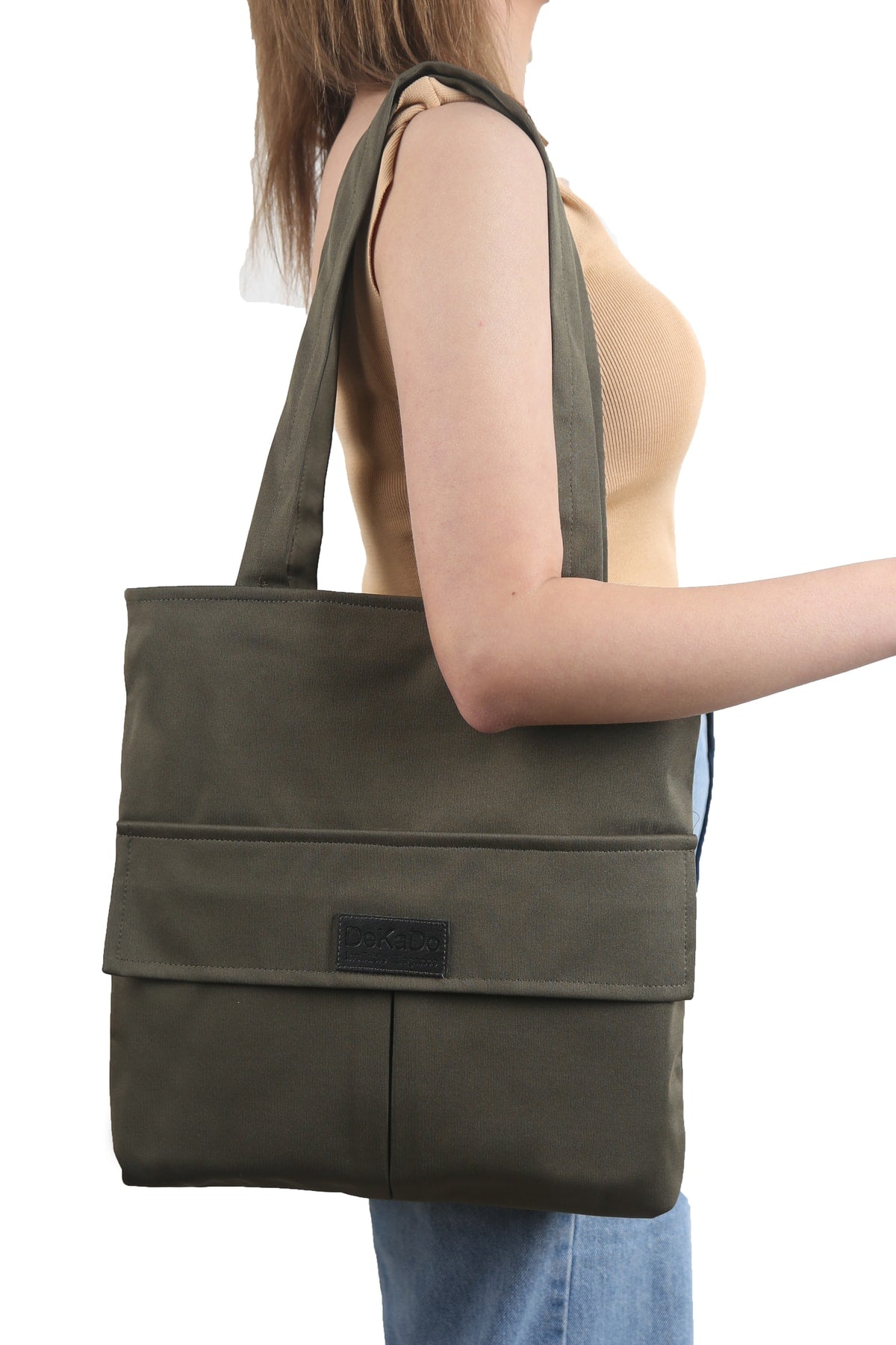 Women'S Khaki Bag Zippered Hand And Shoulder Bag Canvas Fabric Tote Bag