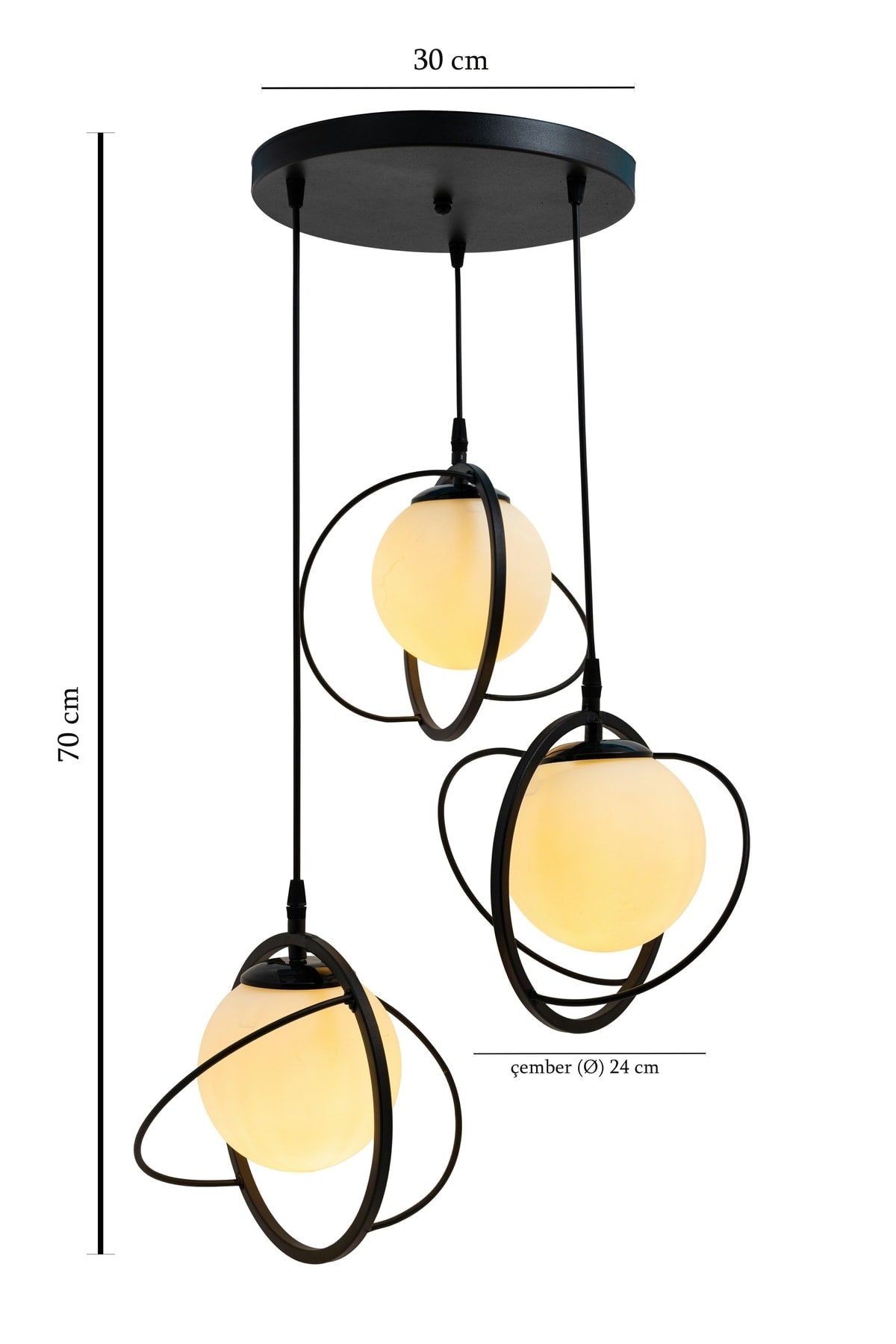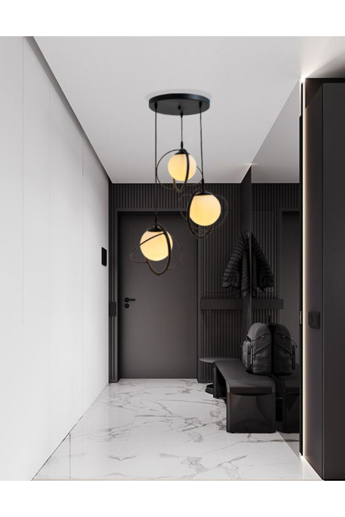 World 3-Piece Tray Glop Black Chandelier With White Color Glass. Living Room, Kitchen, Teenager, Room, Bedroom, Store