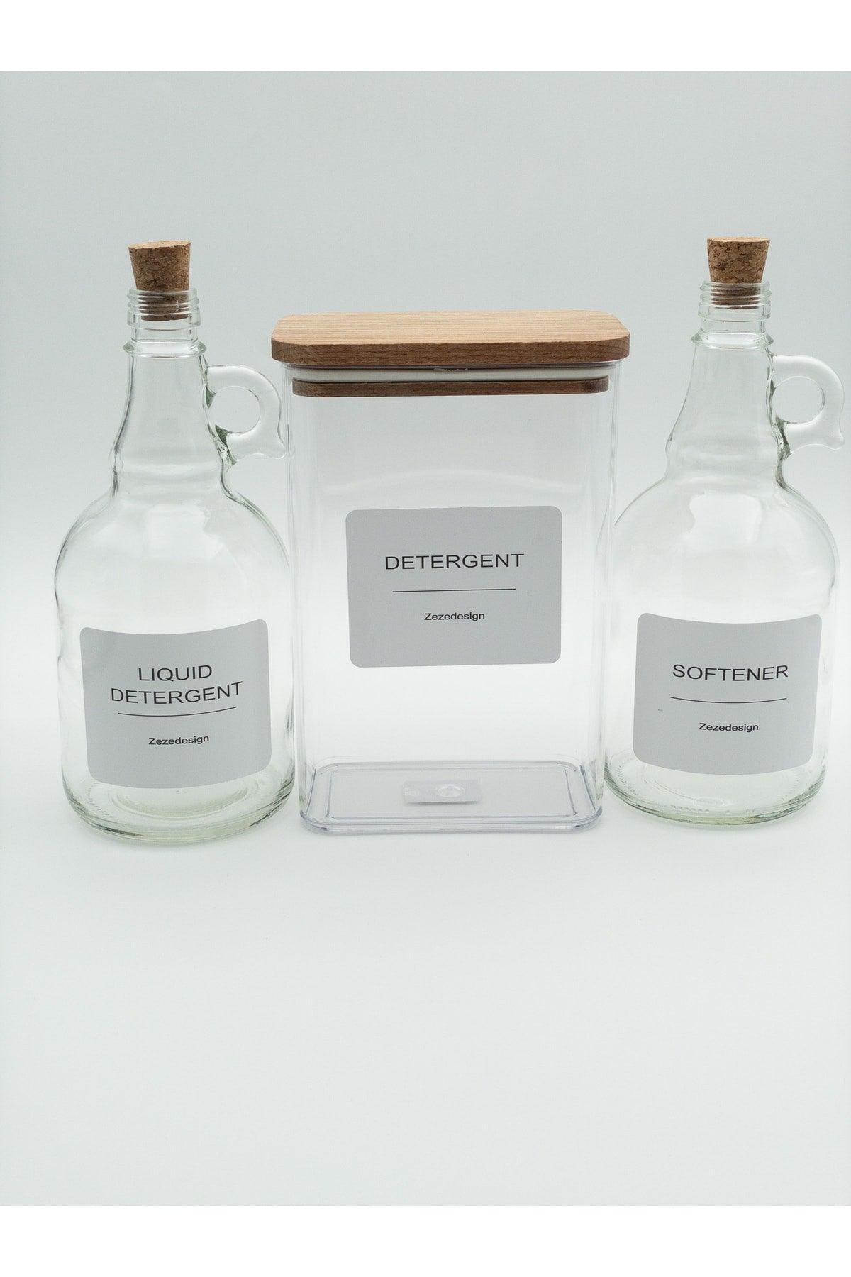 Powder Detergent Jar / Box With Wooden Lid 2300ml And Liquid Detergent Bottle With Cork Cap 1000ml - Swordslife