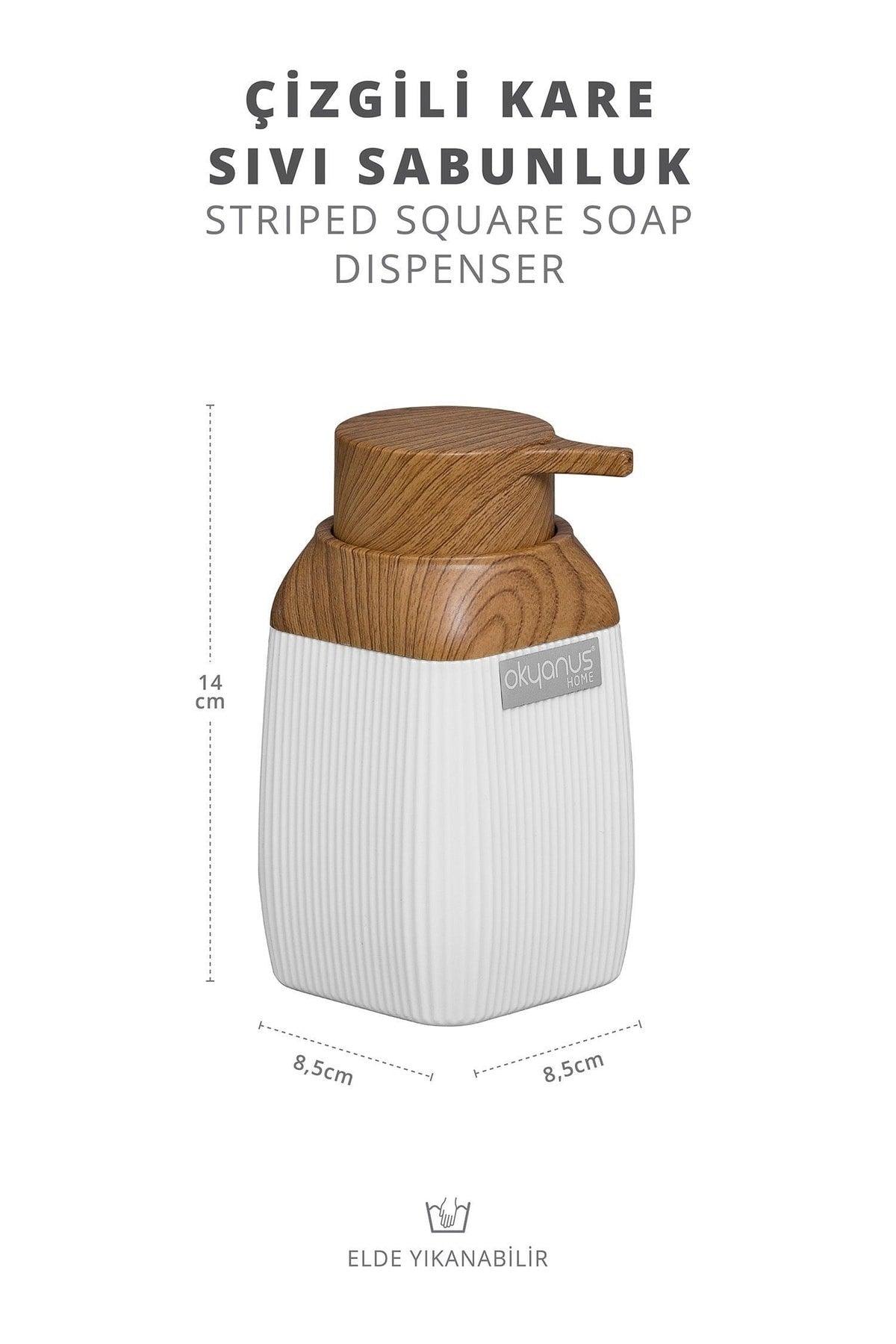 Jabón de fluido cuadrado blanco con estampado de ahşap