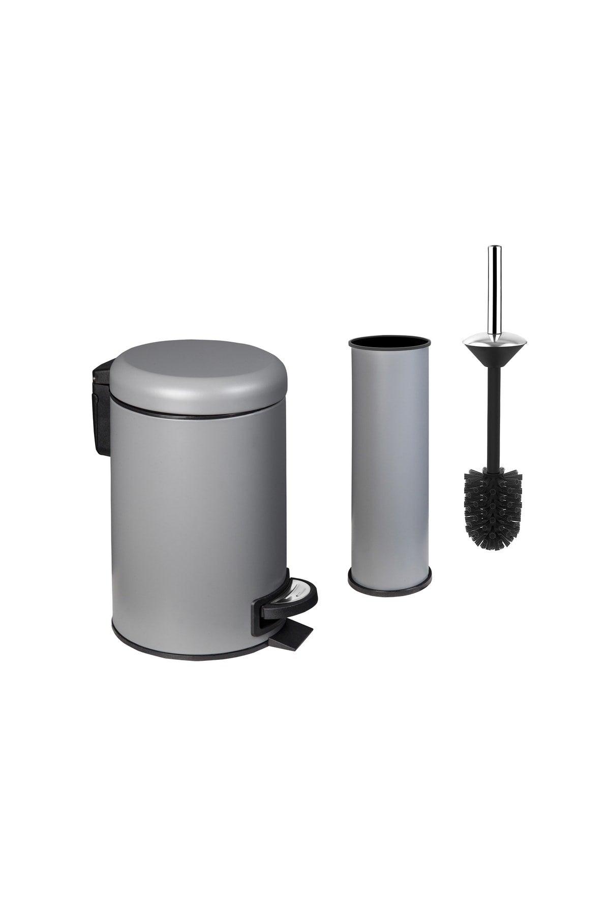 Set de baño doble de élite - gris (cepillo para basura 3lt + bocina de inodoro)