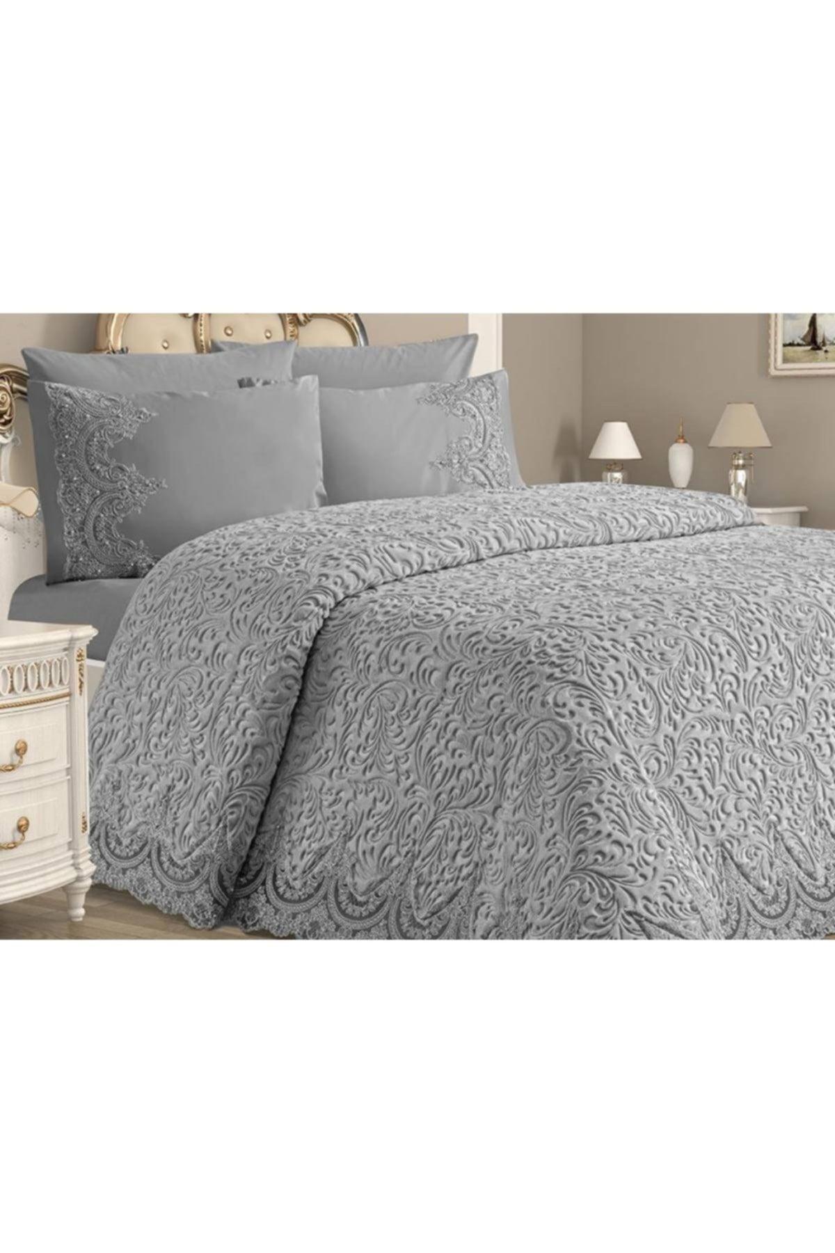 Duru 6 Pieces Gray Double Bedspread ( Sheet + Bed Cover + Pillow ) - Swordslife