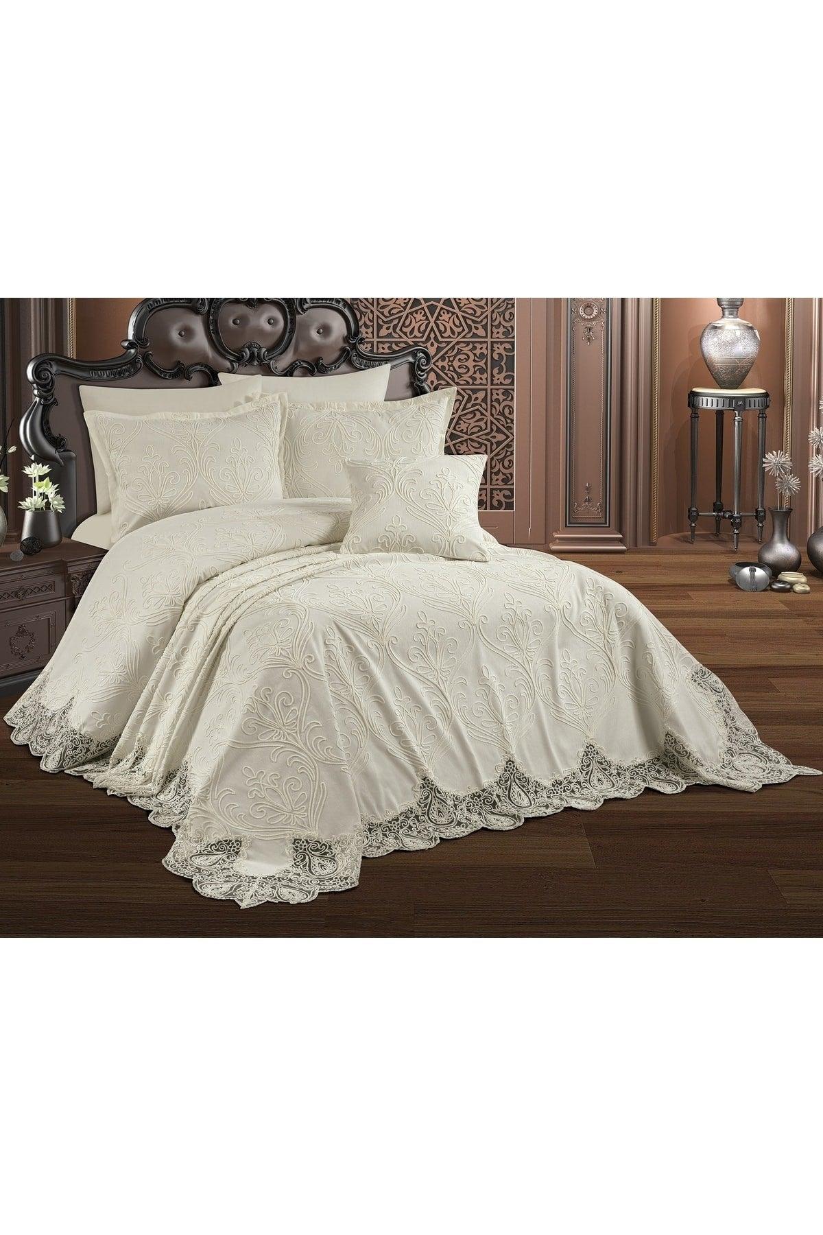 Alya 6 Pieces Cream Bedspread Set Double (Bed Cover + Sheet + Pillow) - Swordslife