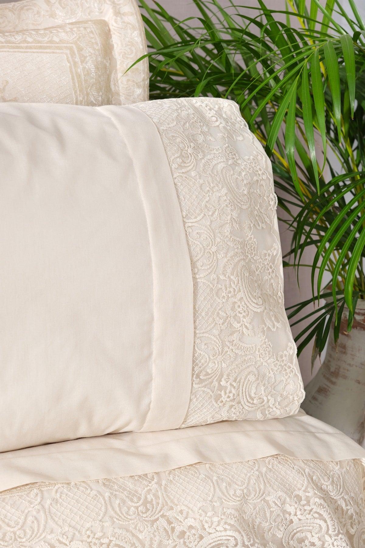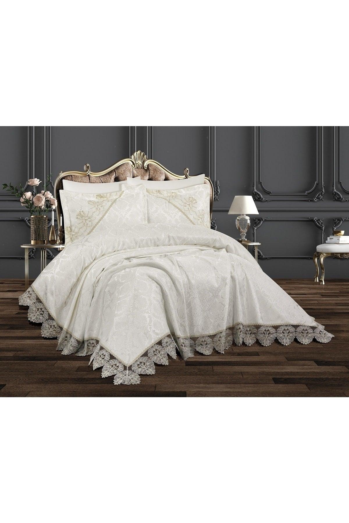 Eslem 6 Pieces Cream Double Bed Cover ( Sheet + Bed Cover + Pillow ) - Swordslife